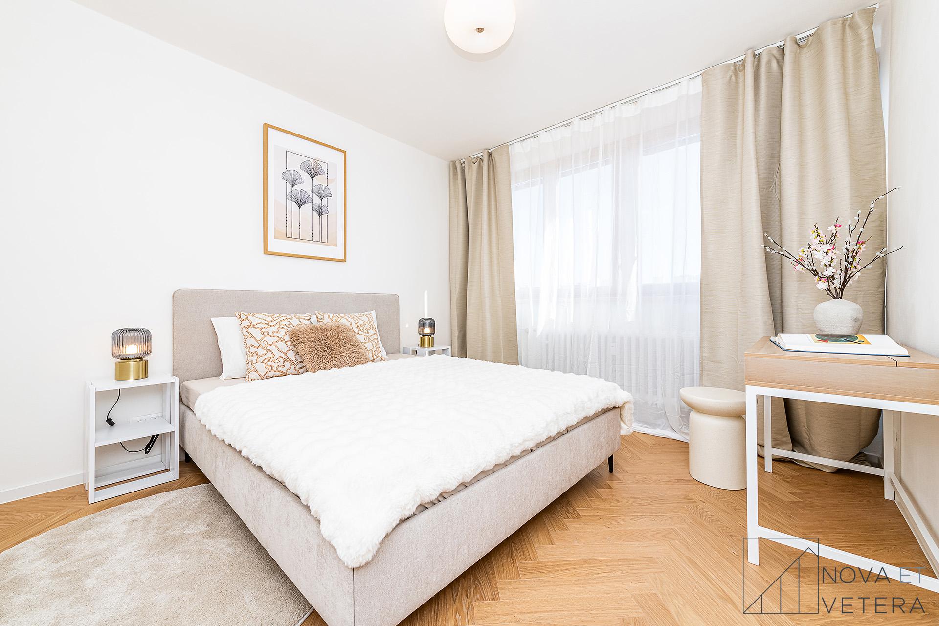 Byt právě prošel kompletní a kvalitní rekonstrukcí, která zahrnovala nové rozvody elektřiny, vody a odpadů, moderní dřevěné podlahové krytiny, obklady a dlažbu italské značky Marazzi a koupelnu se sanitou značky Grohe. Součástí bude také zcela nová kuchyňská linka vybavená vestavnými spotřebiči prémiové značky Bosch s prodlouženou zárukou 5 let. Byt je tedy připraven k okamžitému užívání ve vysokém standardu a bez nutnosti dalších investic.