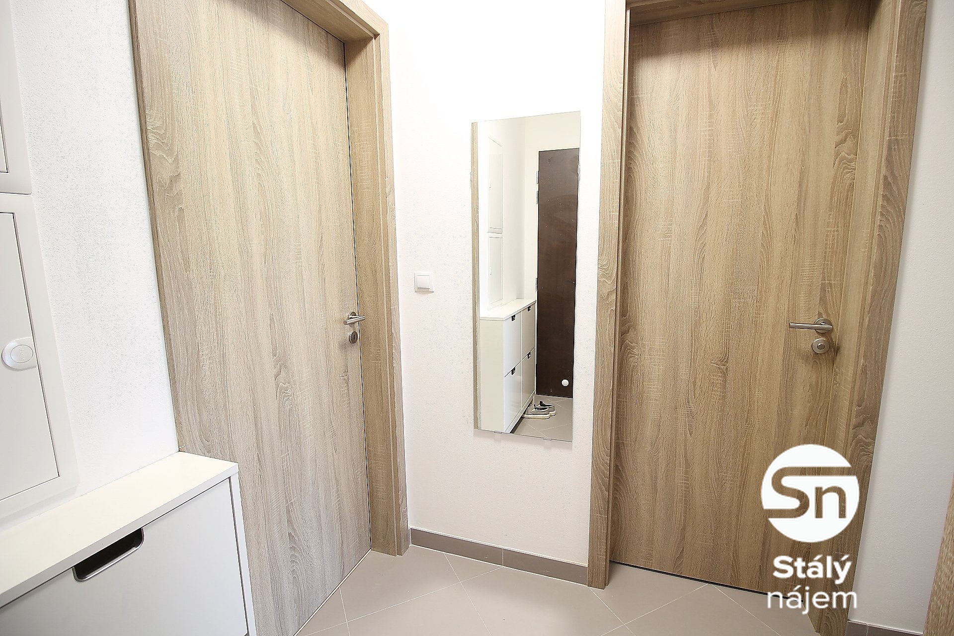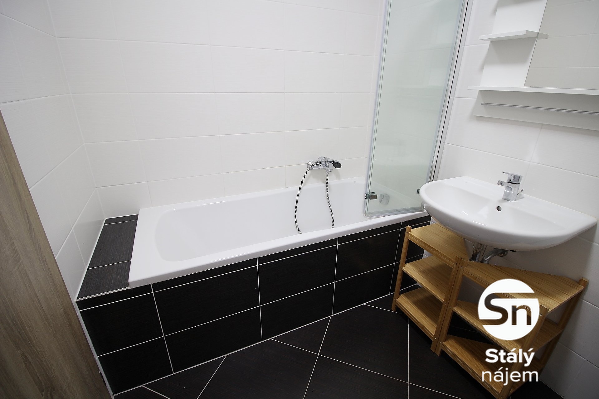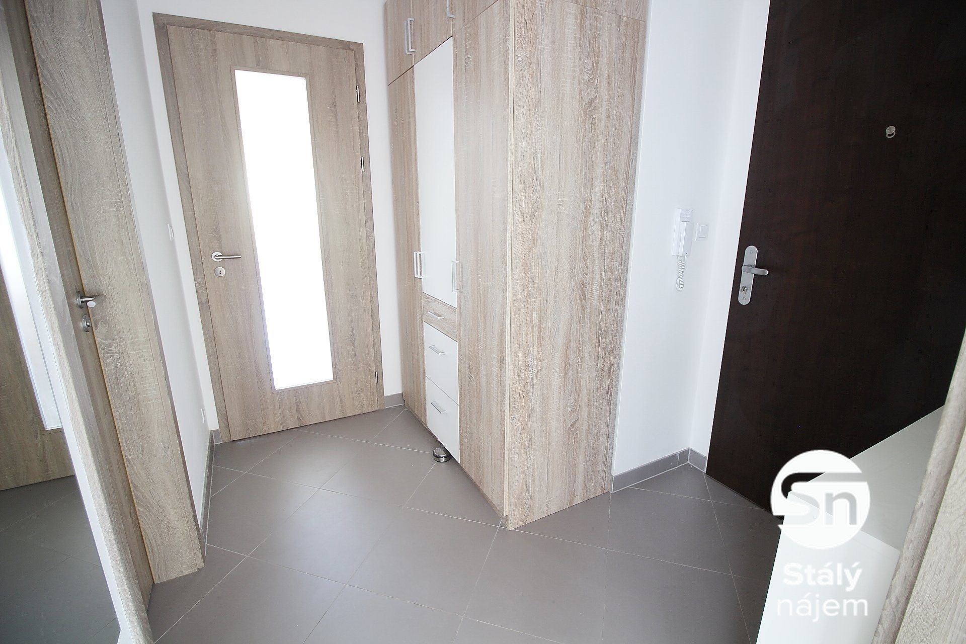 Obývací pokoj je spojen s moderním kuchyňským koutem vybaveným veškerými spotřebiči a doplněným o jídelní stůl se židlemi; v obývací části je pohodlná pohovka, komoda a TV stolek a z pokoje je vstup na balkon. Útulná ložnice je zařízena dvoulůžkovou postelí. Koupelna disponuje vanou a pračkou, toaleta je její součástí. V chodbě je k dispozici botník a šatní skříň.