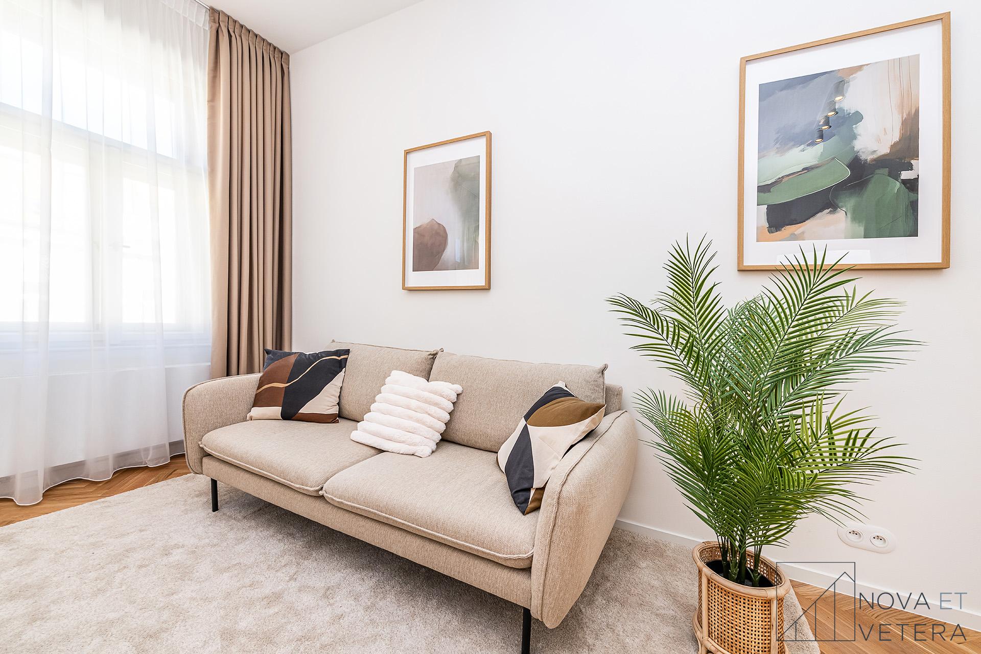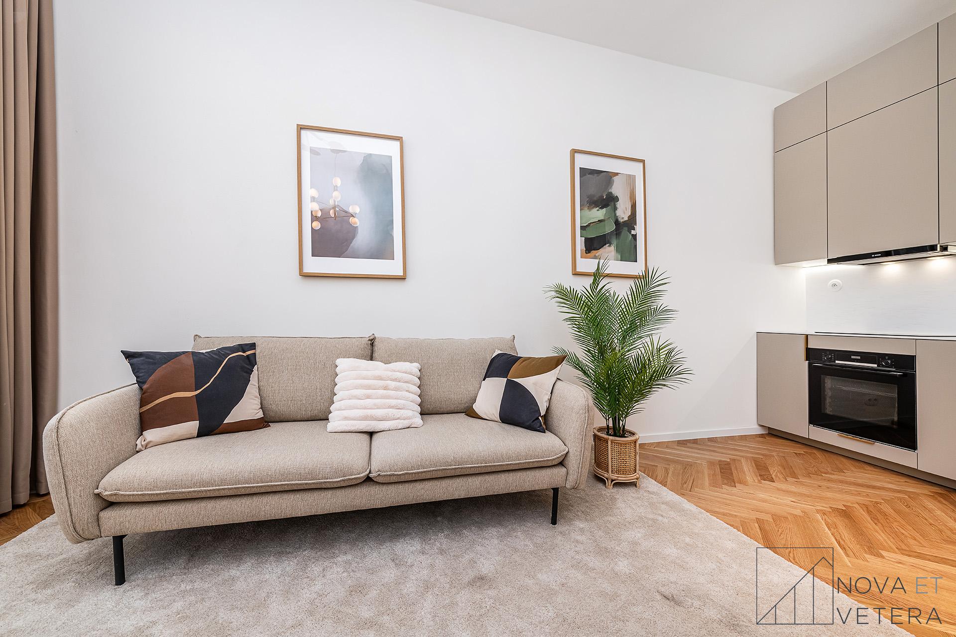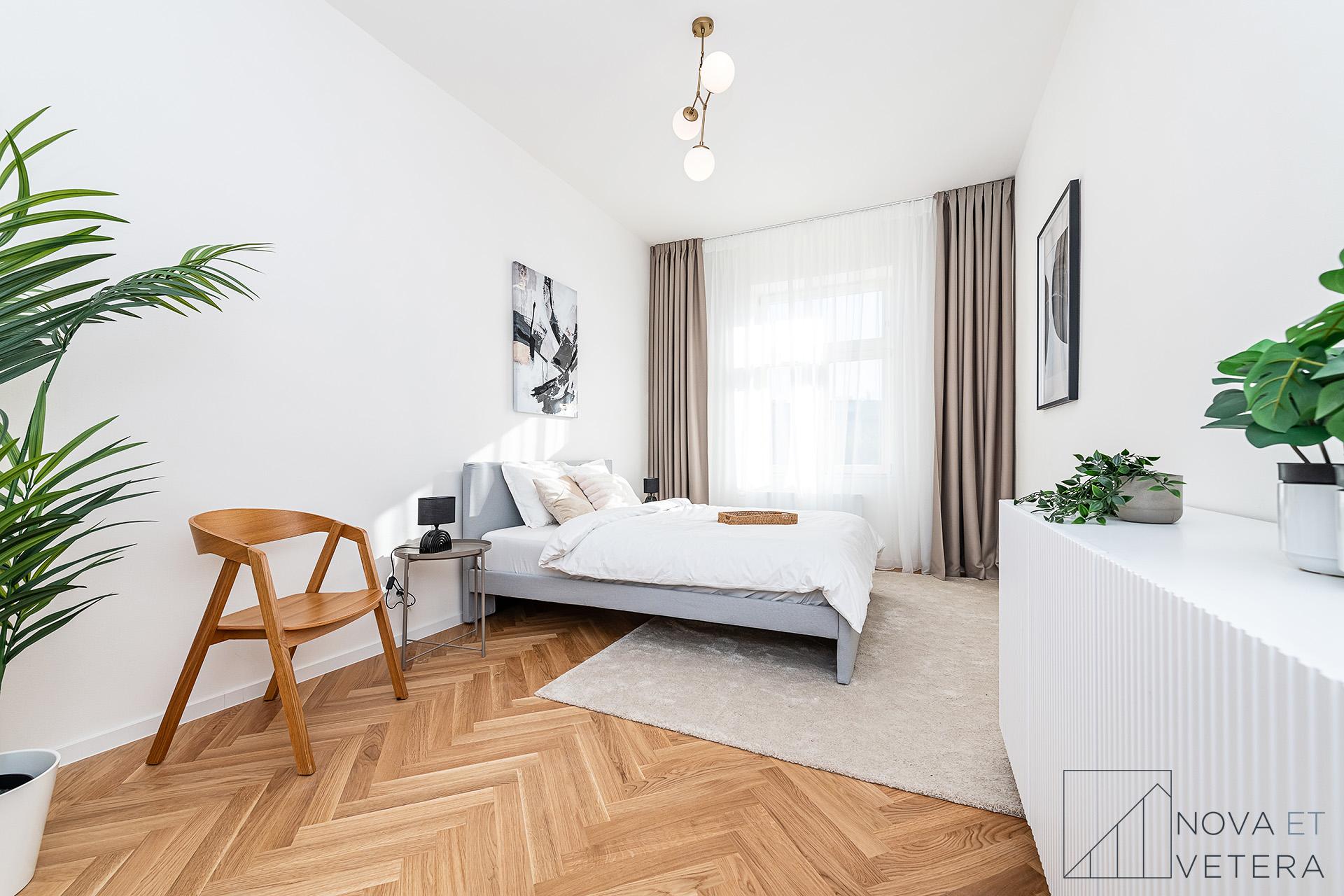 Vysoký standard kompletní rekonstrukce zahrnuje nové rozvody elektřiny, vody a odpadů. Dále rekonstrukce zahrnuje dřevěné parketové podlahy, kvalitní velkoformátové obklady a dlažbu od italského dodavatele MARAZZI. V koupelně a na toaletě naleznete sanitu značky GROHE. Moderní kuchyňská linka disponuje mimo jiné kvalitními spotřebiči značky BOSCH a zapuštěným granitovým dřezem.