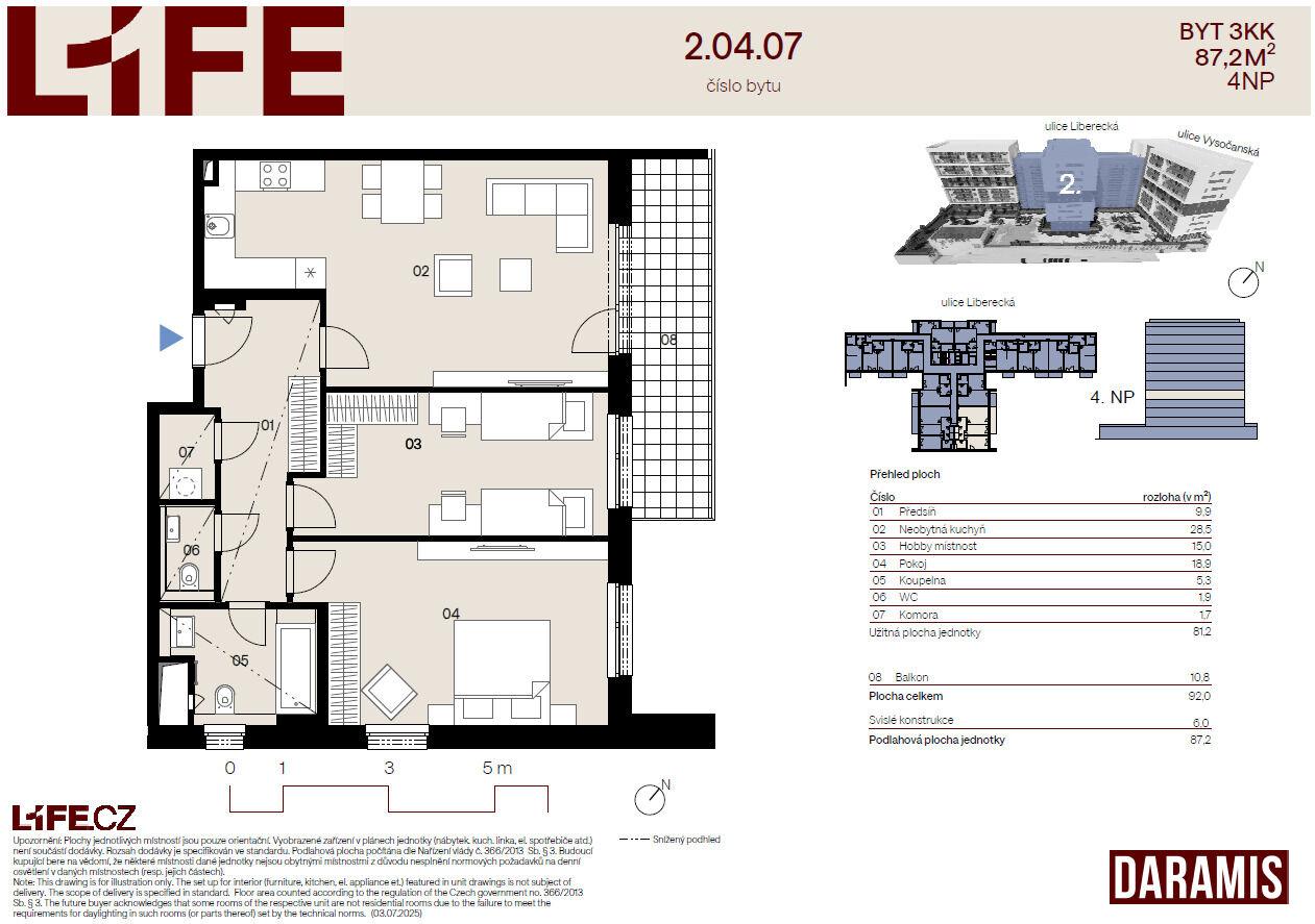 | Dispozice/podlahová plocha: | 3+kk/87 m² |