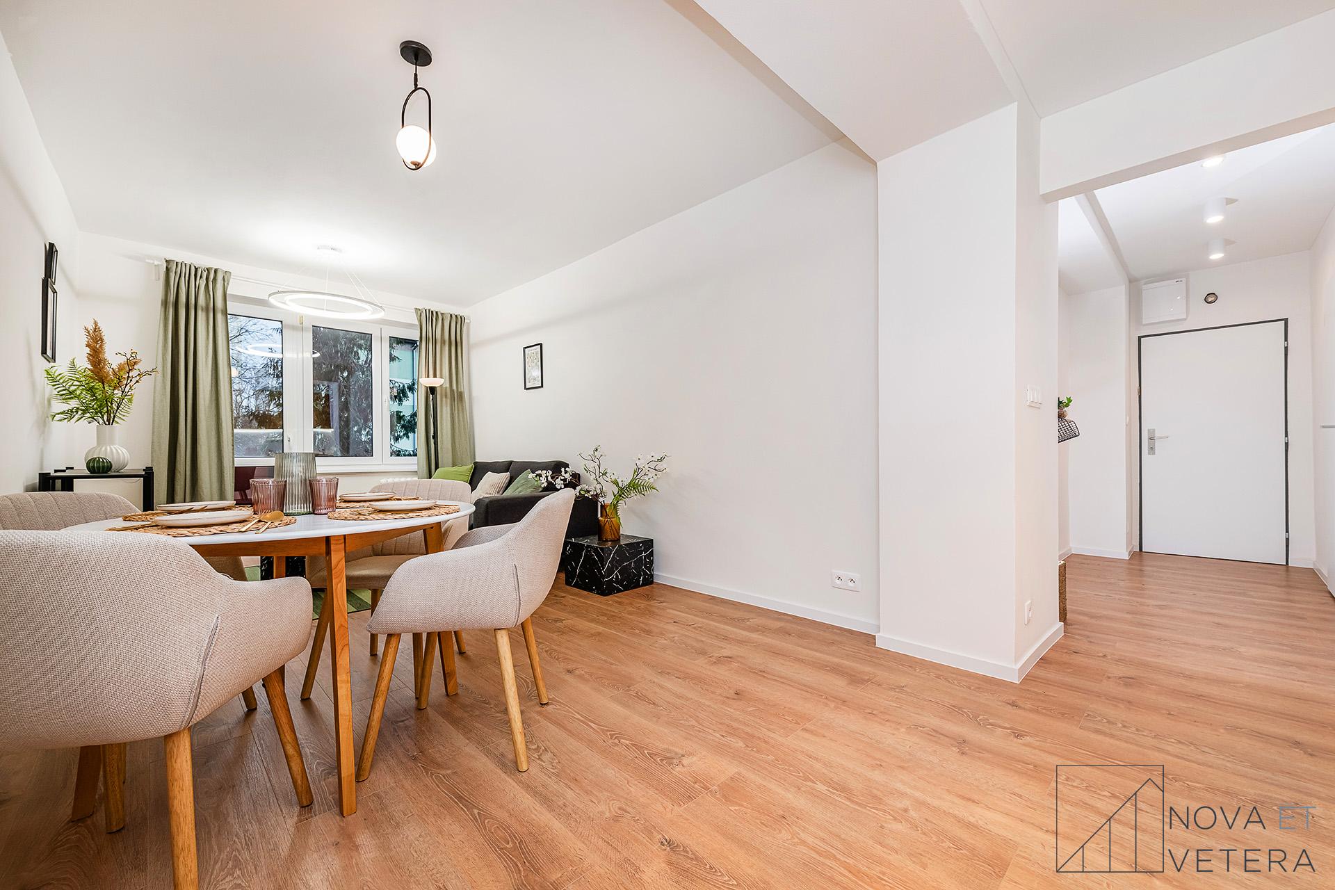 Byt právě prochází kompletní a kvalitní rekonstrukcí a bude připraven k nastěhování v květnu 2026. Rekonstrukce zahrnuje nové rozvody elektřiny, vody a odpadů, nové dřevěné podlahy, moderní obklady a dlažbu značky Marazzi, koupelnu se sprchovým koutem a sanitou Grohe a také novou kuchyňskou linku se spotřebiči prémiové značky Bosch, na kterou je poskytována prodloužená záruka 5 let.