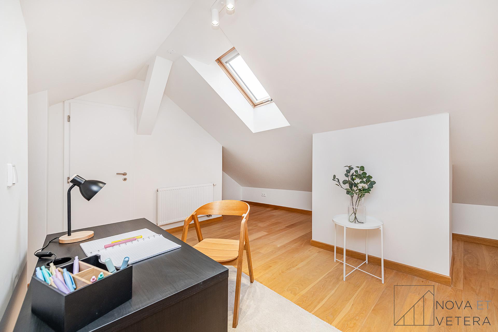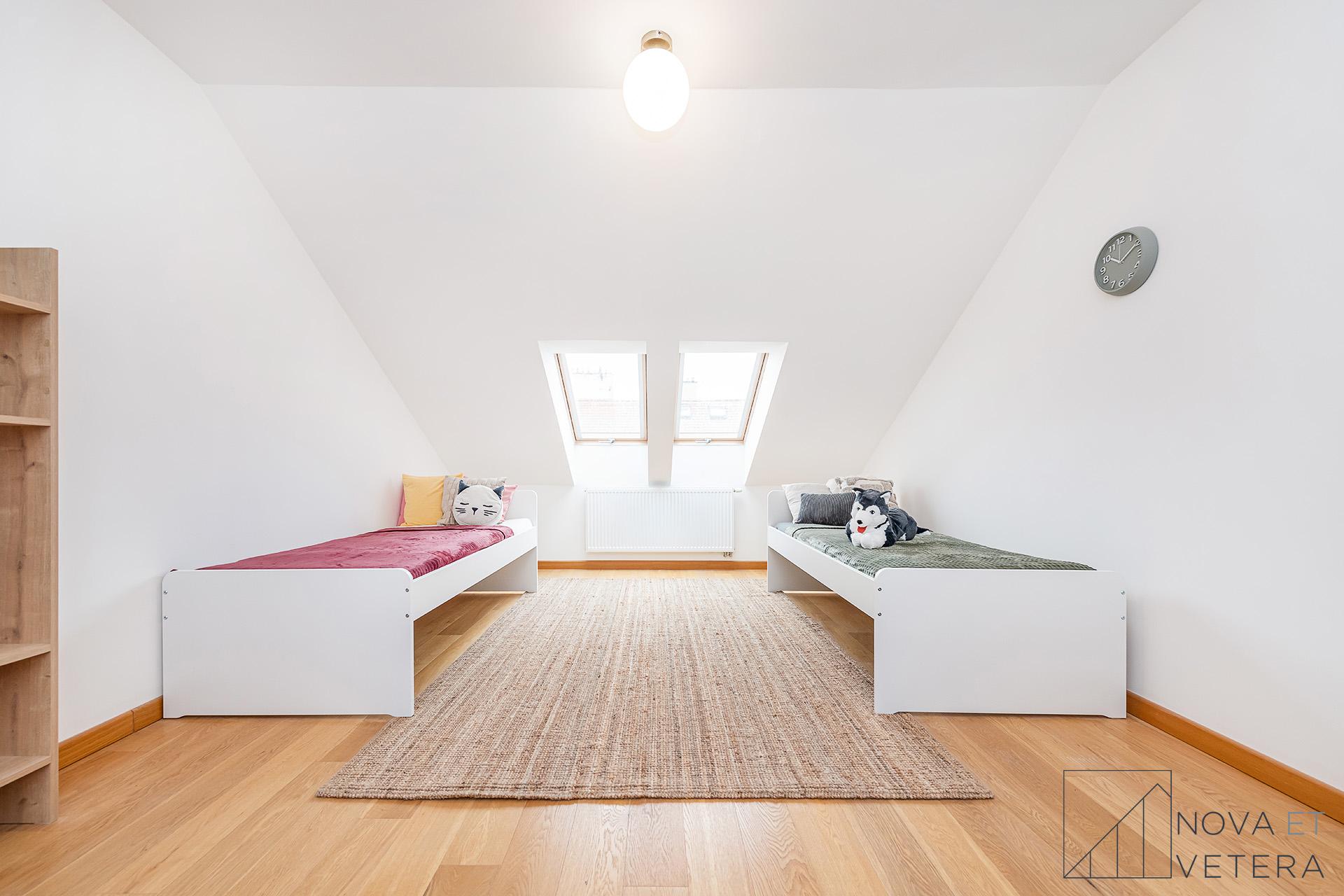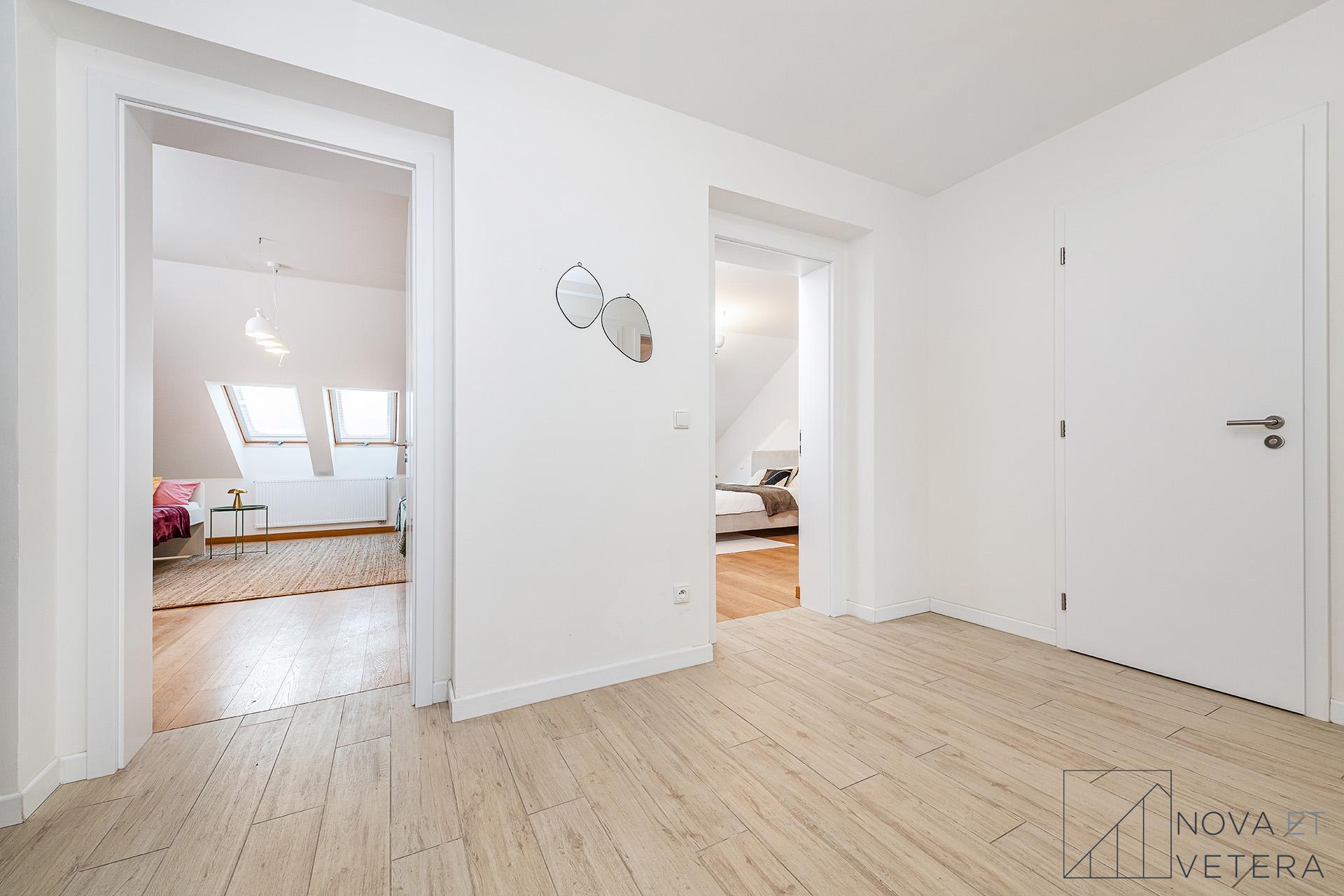 Na stejném podlaží se nachází ještě jeden podkrovní mezonet s dispozicí 4+kk ve stejném standardu.