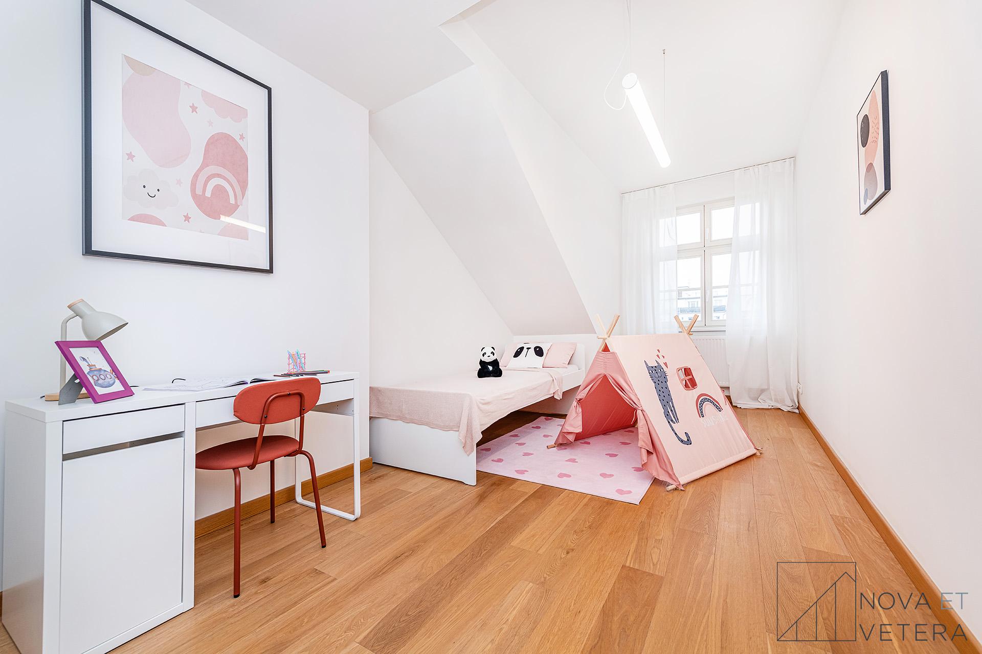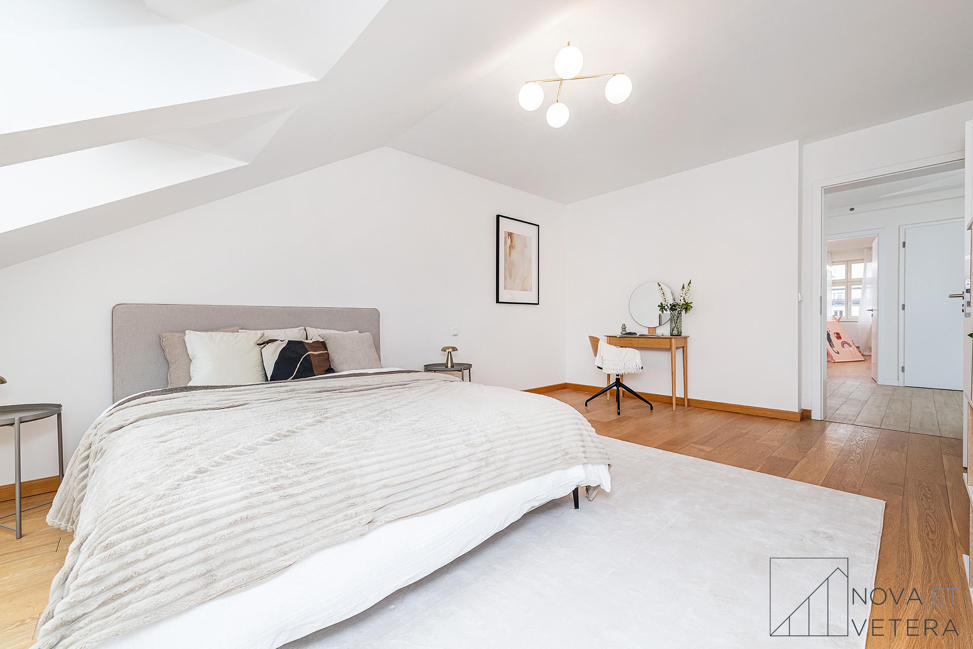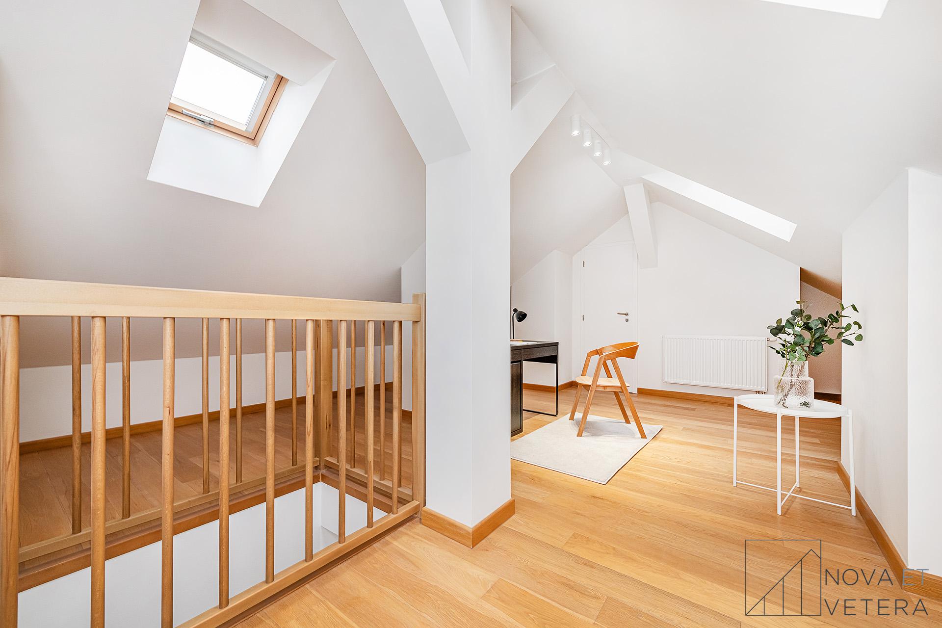 Na stejném podlaží se nachází ještě jeden podkrovní mezonet s dispozicí 4+kk ve stejném standardu.