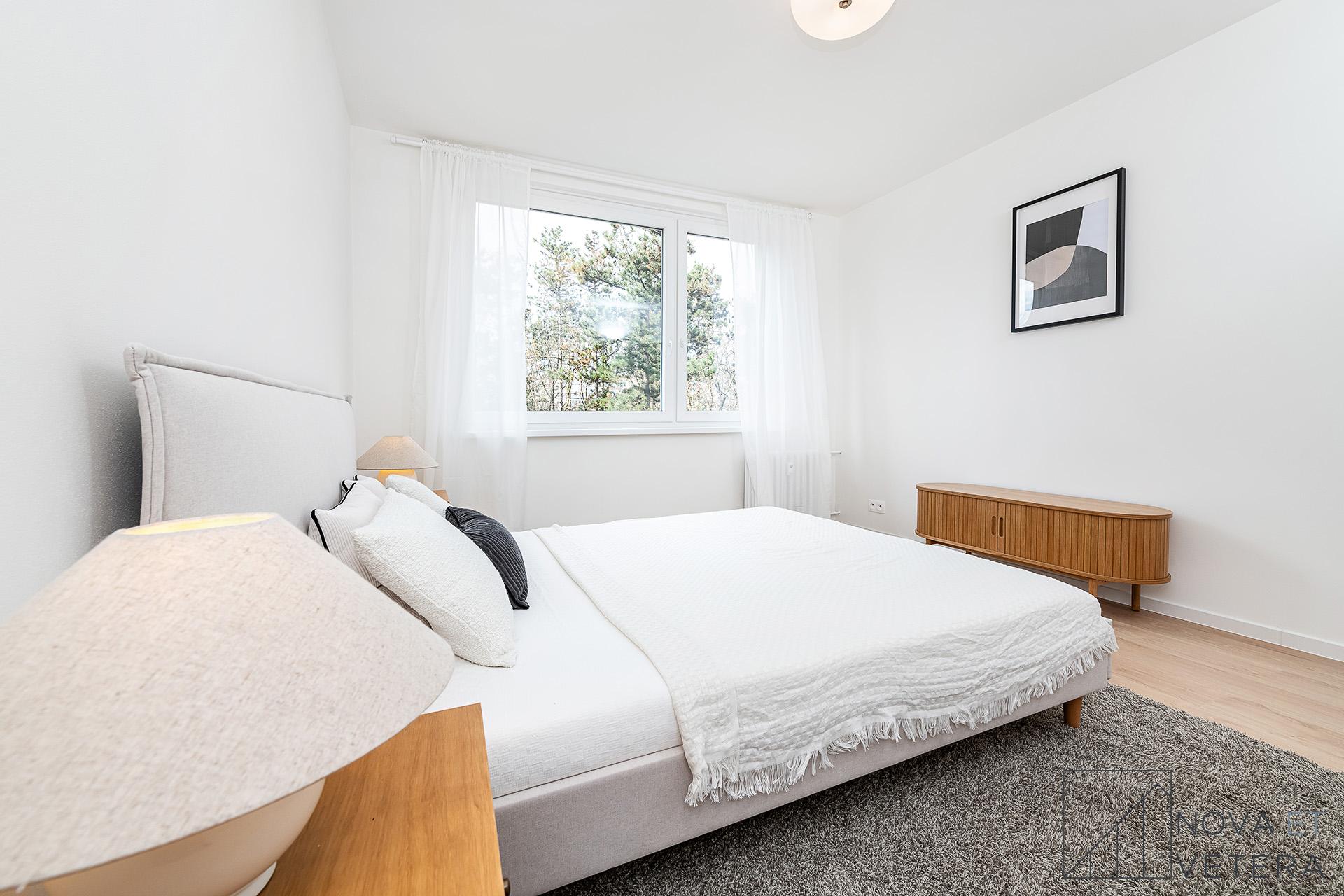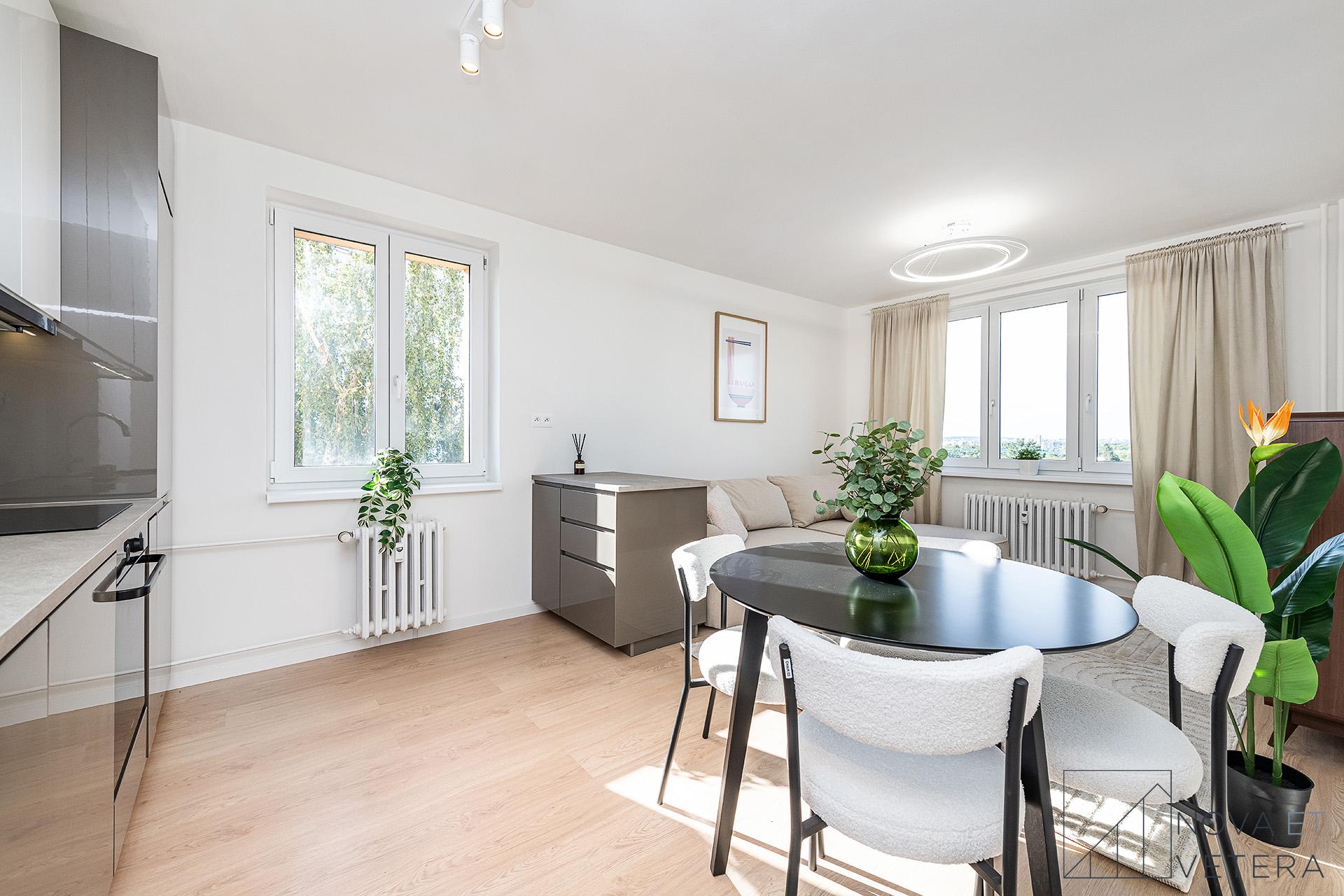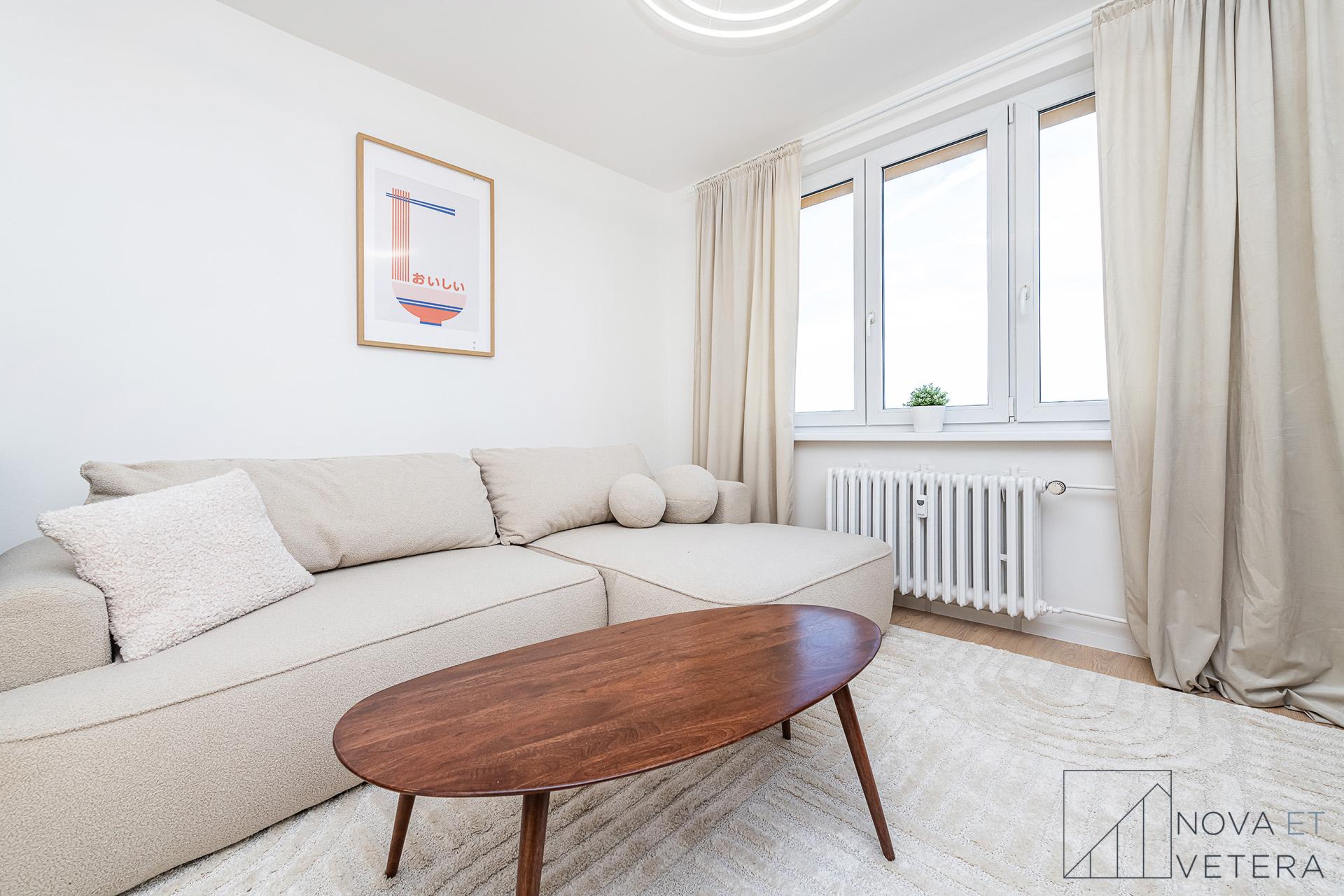 Byt právě prochází kompletní rekonstrukcí a k nastěhování bude připraven od července 2026. Rekonstrukce zahrnuje nová okna, nové designové podlahy, kvalitní obklady a dlažbu značky Marazzi, nové rozvody elektřiny, vody a odpadů, sanitu značky GROHE a moderní kuchyňskou linku včetně vestavných spotřebičů značky Gorenje s prodlouženou pětiletou zárukou.
