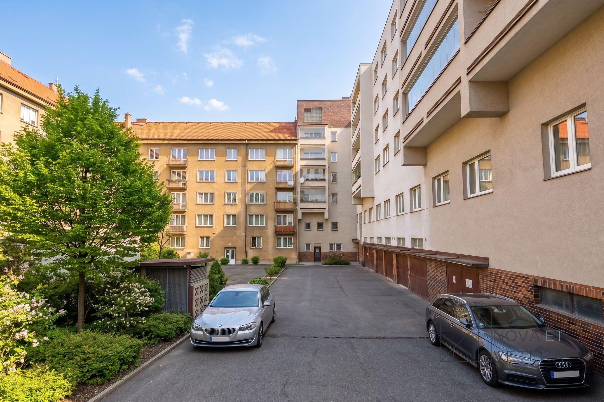 Byt je orientován na jih a sever a nabízí příjemné světelné podmínky po celý den, s výhledem do klidné ulice i do vnitrobloku se zelení. Součástí je také sklep o ploše 2 m² a garážové stání, které je v pražských podmínkách nadstandardní benefit. Dům i společné prostory jsou ve výborném stavu.