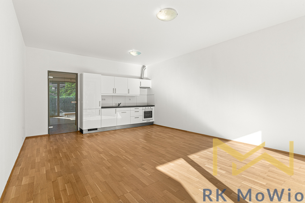 Nemovitost nabízí vzdušnou chodbu s vestavěnou skříní, koupelnu (s vanou, toaletou, pračkou a místem pro sušičku), prostorný, světlý obývací pokoj s kuchyňskou linkou. Z pokoje je vstup na praktickou zastřešenou terasu a malou zelenou oázu formou předzahrádky pro navození příjemné uklidňující atmosféry.