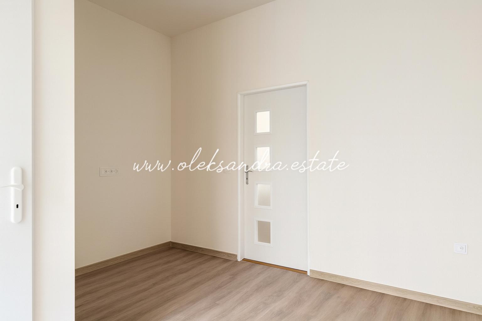 Rekonstrukce zahrnovala kompletně nové elektroinstalace, rozvody vody, nově vybudovanou moderní koupelnu se sanitou, nové omítky, štuky a upravené stropy. V předsíni byla položena nová dlažba a díky velkému oknu působí prostor velmi světlým dojmem. Komora slouží jako technické zázemí s elektrickým bojlerem a přípojkou na pračku. Zbylé vybavení, zejména kuchyň a detaily interiéru, je ponecháno k dokončení budoucím vlastníkem dle jeho vlastních představ.