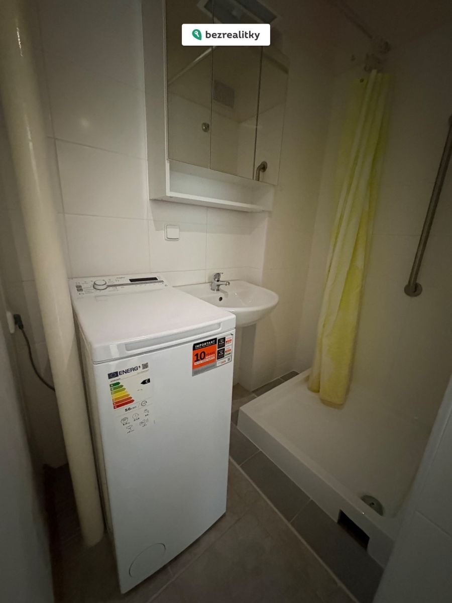 Dispozice bytu je velmi praktická. Jedná se o prostornou místnost s malinkou kuchyňkou u vchodu. V koupelně sprchový kout, pračka, částečně oddělené Wc.