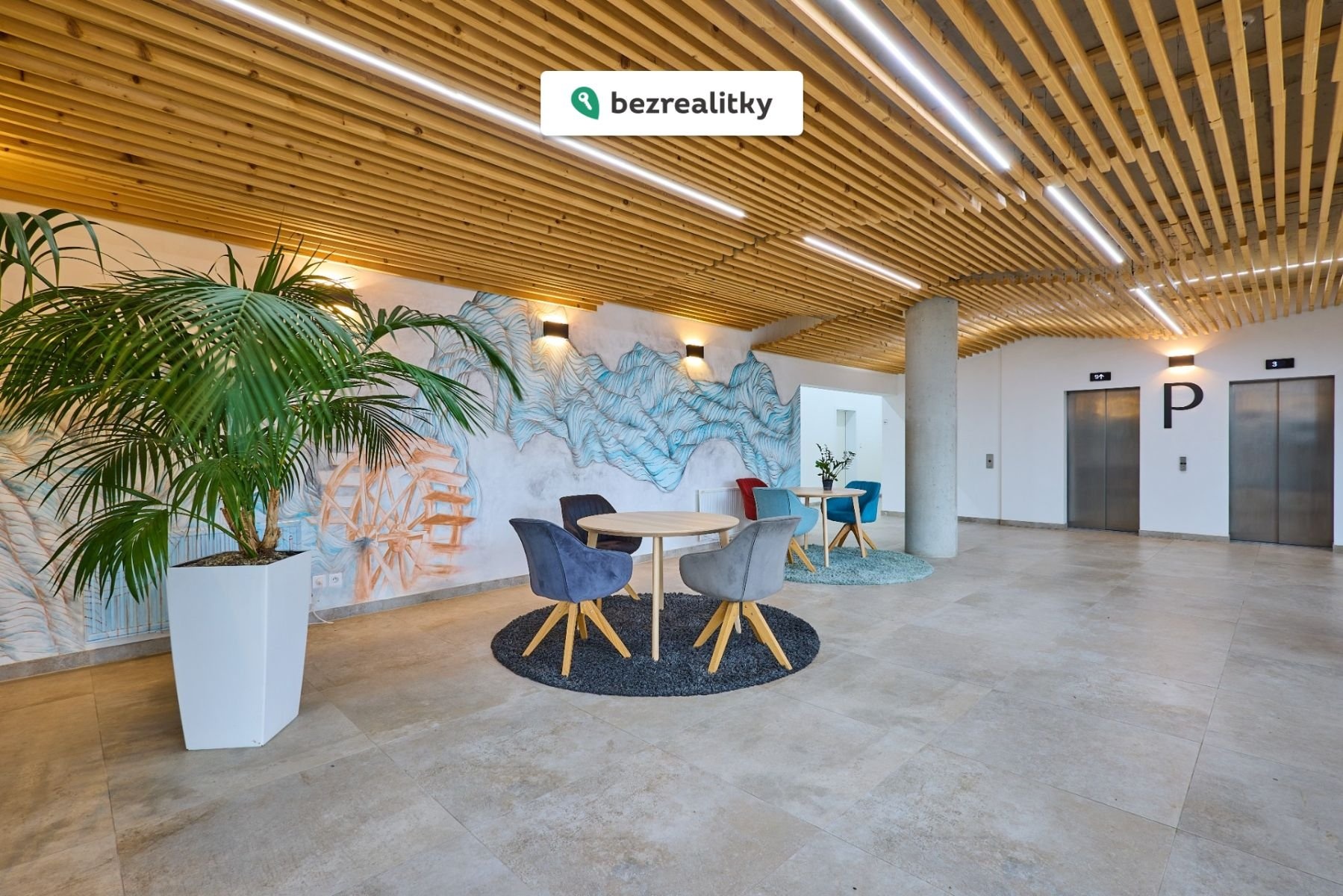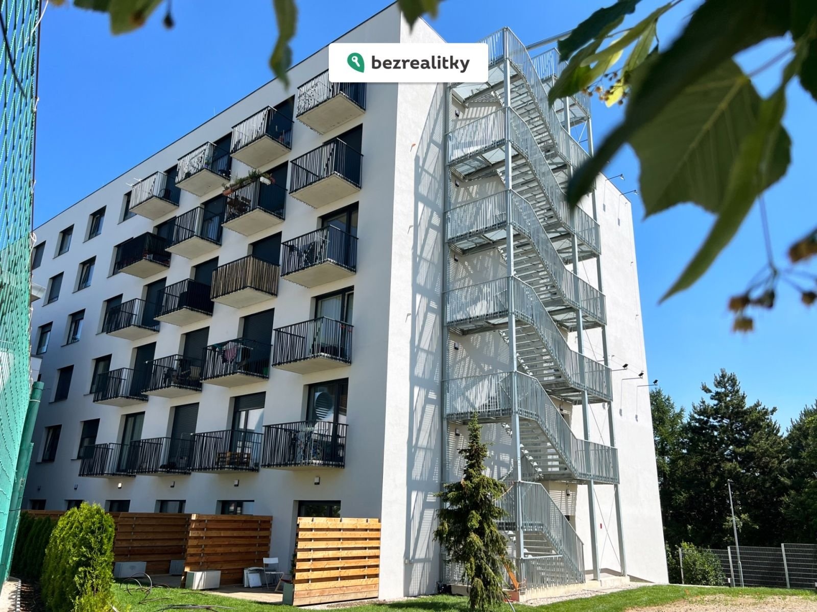 Dispozici tvoří vstupní chodba se šatní skříní, koupelna se sprchovým koutem a obytný prostor s částečně vybaveným kuchyňským koutem a vstupem na balkon. Komfortní prostředí zajišťují předokenní rolety a systém rekuperace, který udržuje čerstvý vzduch po celý rok. Energetická třída A přináší nízké provozní náklady. K dispozici je možnost pronájmu garážového stání.
