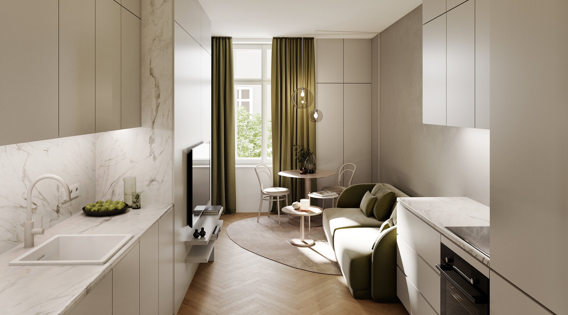 | Dispozice/podlahová plocha: | 1+kk/31 m² |