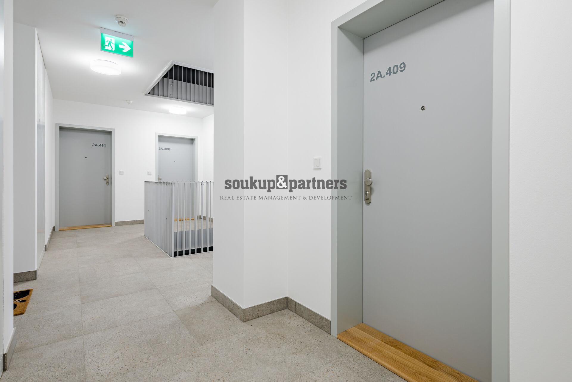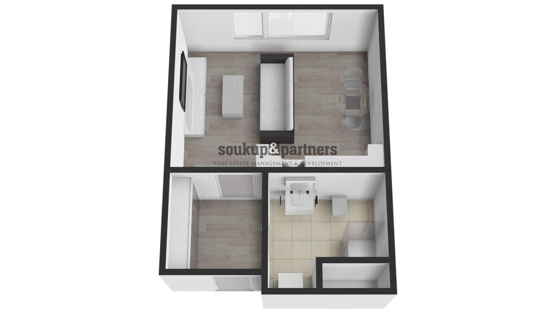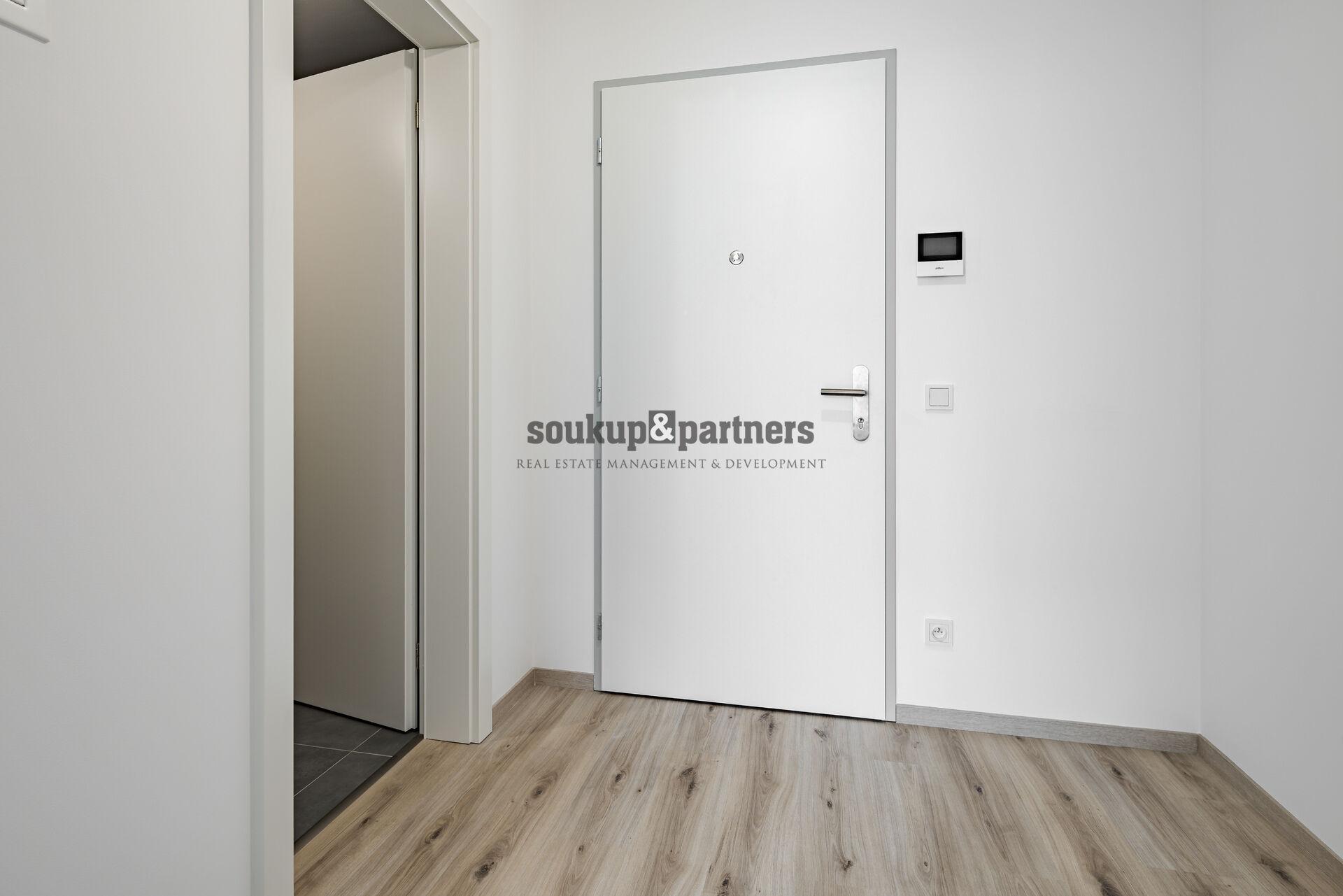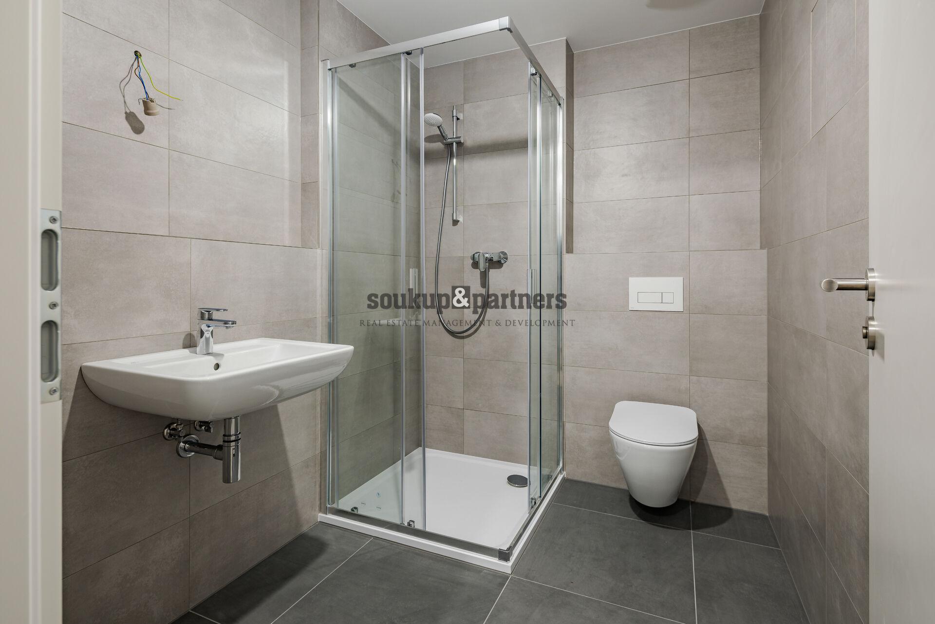 Byt má celkovou plochu 29,78 m² a díky promyšlenému dispozičnímu řešení působí velmi funkčně a efektivně. Vstupní část nabízí prostor pro vestavěné skříně, odkud je přístup do koupelny se sprchovým koutem a toaletou. Koupelna je vybavena sanitou značky Hansgrohe a je zde připravena přípojka na pračku. Hlavní obytný prostor navazuje na přípravu pro kuchyňskou linku a je orientován na severovýchod. Na podlahách jsou položeny kvalitní laminátové podlahy Mandal, samozřejmostí jsou nové interiérové dveře od rakouského výrobce.