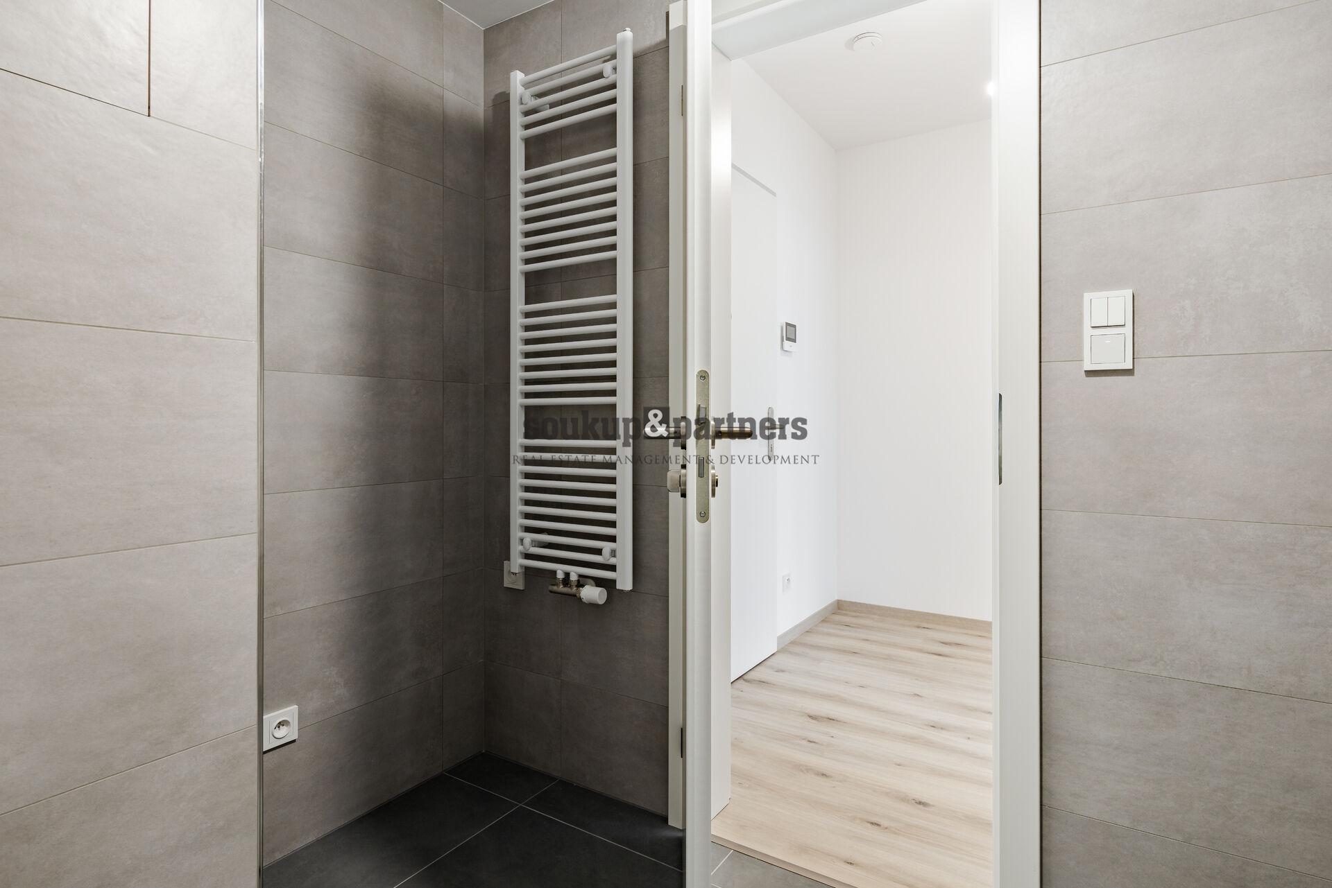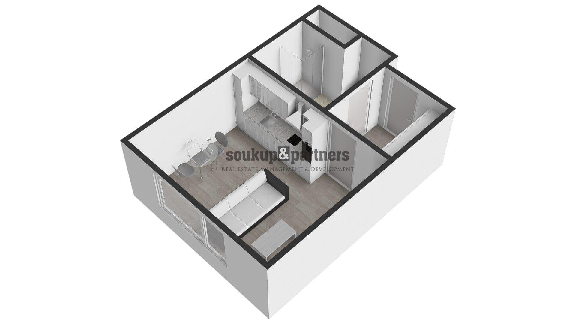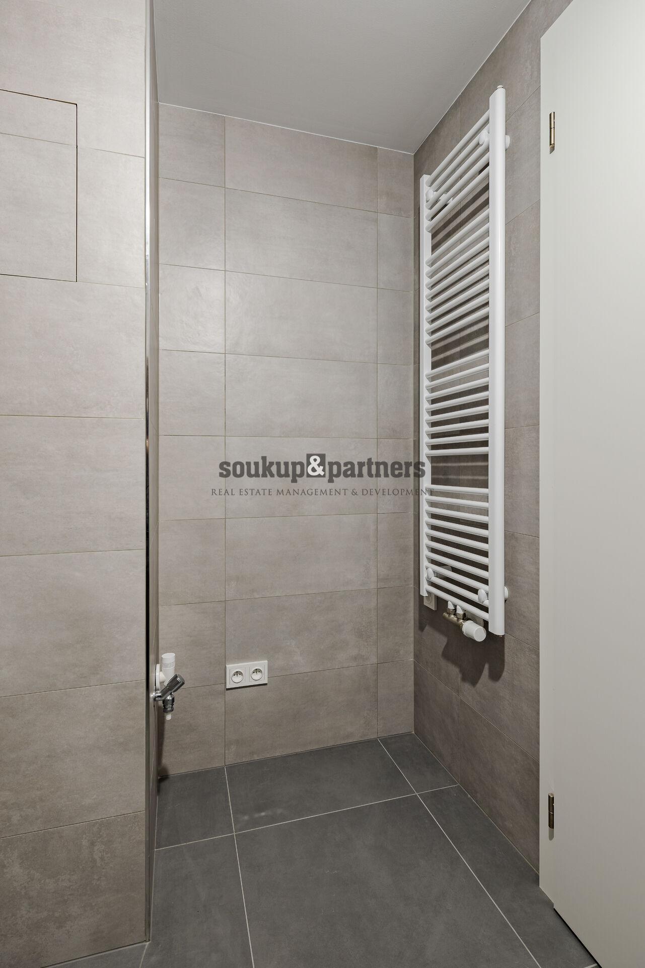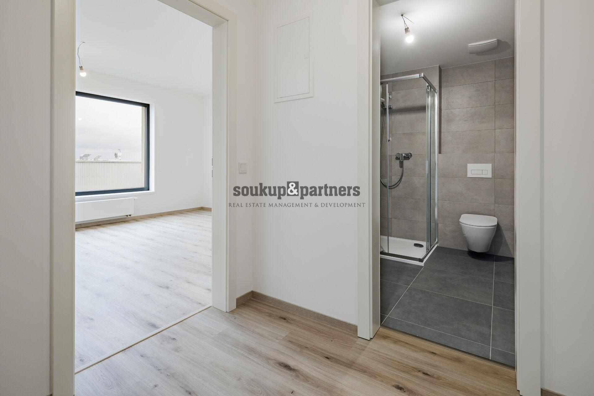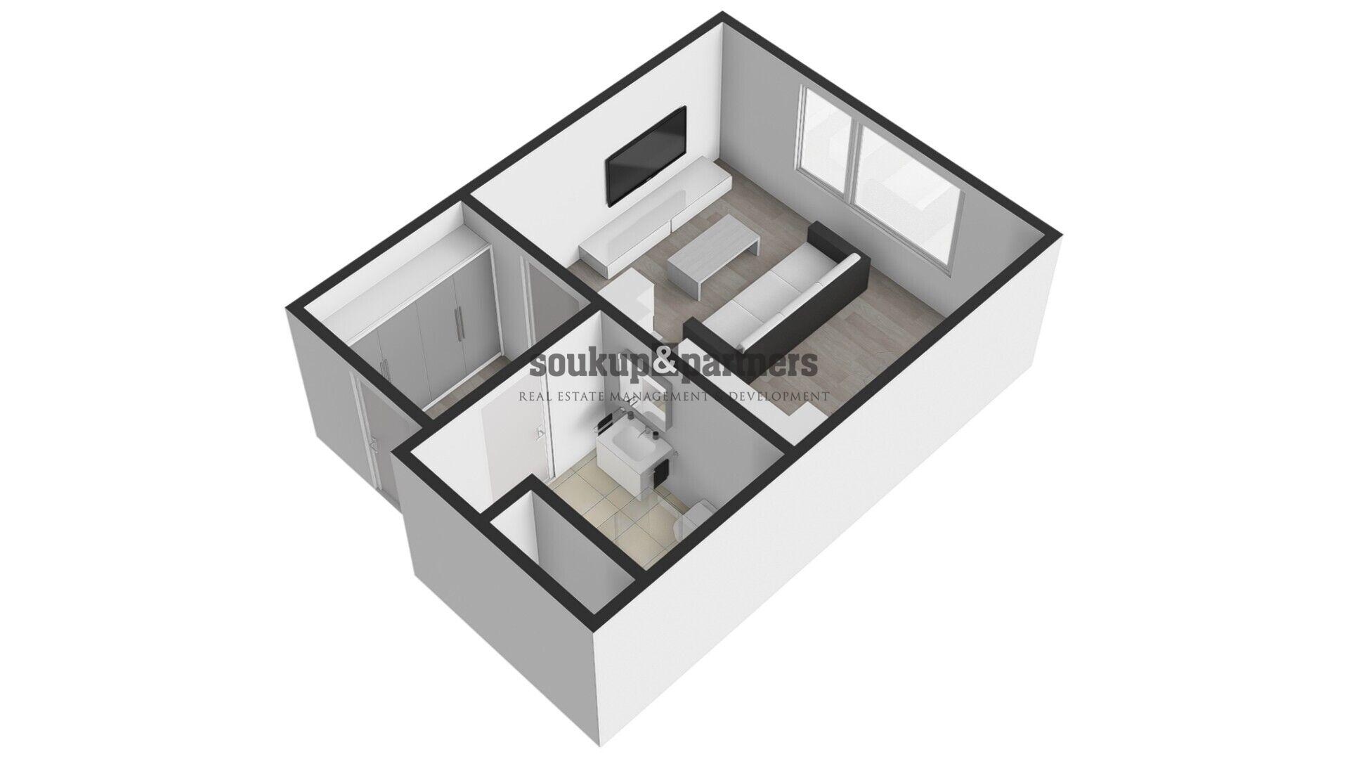 Byt má celkovou plochu 29,78 m² a díky promyšlenému dispozičnímu řešení působí velmi funkčně a efektivně. Vstupní část nabízí prostor pro vestavěné skříně, odkud je přístup do koupelny se sprchovým koutem a toaletou. Koupelna je vybavena sanitou značky Hansgrohe a je zde připravena přípojka na pračku. Hlavní obytný prostor navazuje na přípravu pro kuchyňskou linku a je orientován na severovýchod. Na podlahách jsou položeny kvalitní laminátové podlahy Mandal, samozřejmostí jsou nové interiérové dveře od rakouského výrobce.