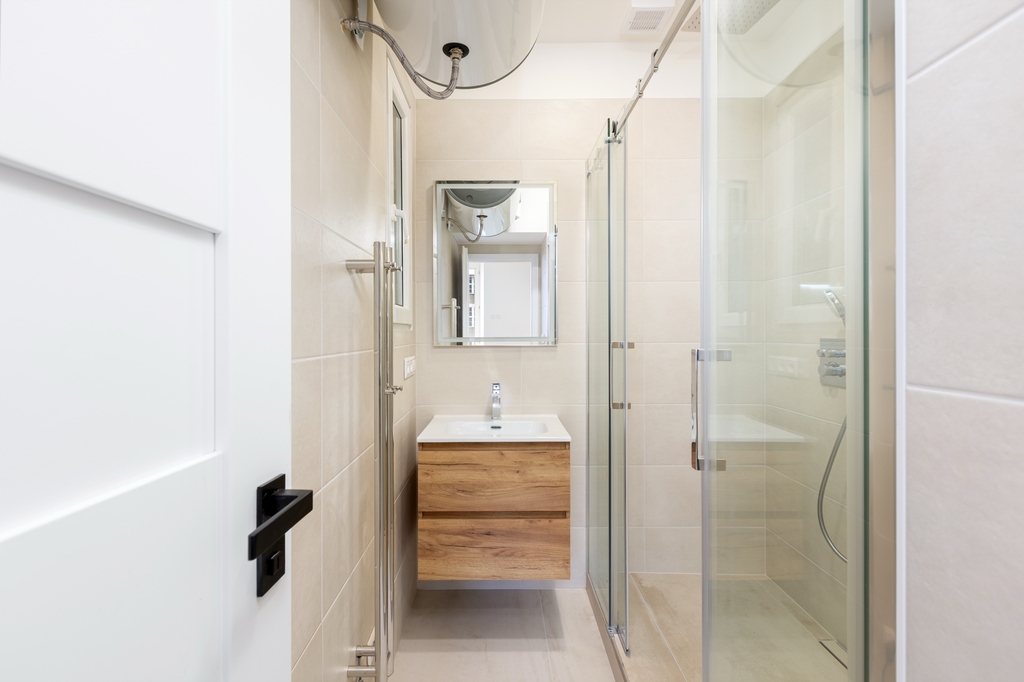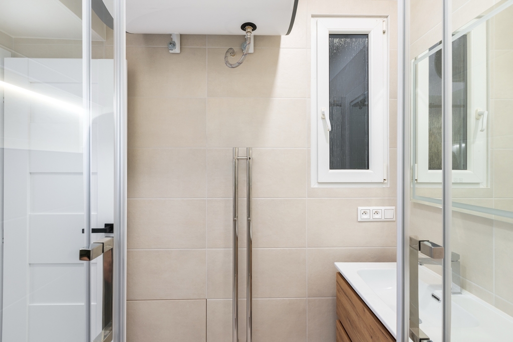 Ohřev vody zajišťuje elektrický boiler a teplo stropní infrapanely, které mohou sloužit i jako možnost osvětlení.