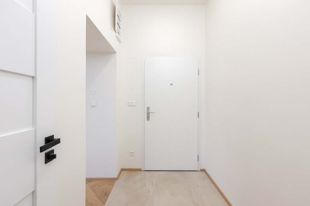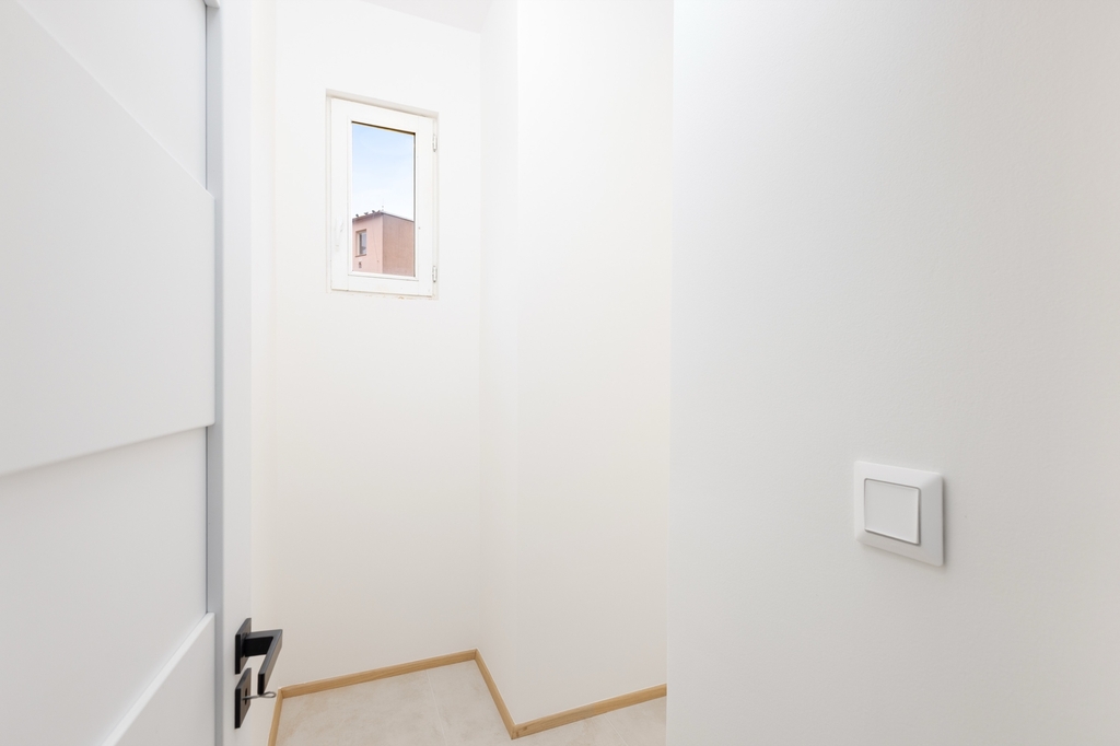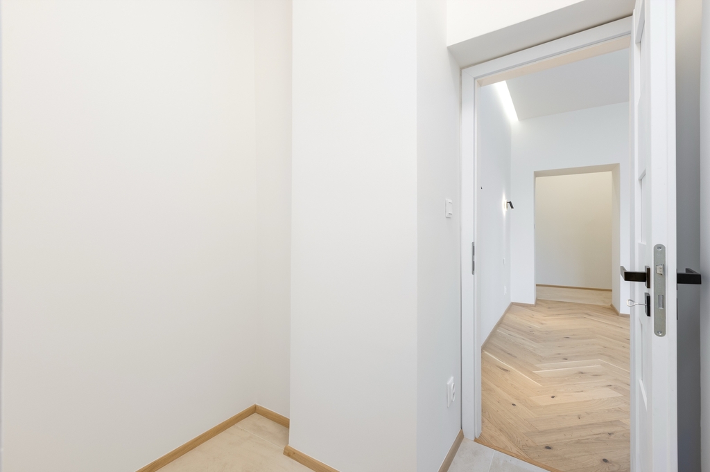 V bytě je samostatně oddělená prostorná komora k uložení oblečení.