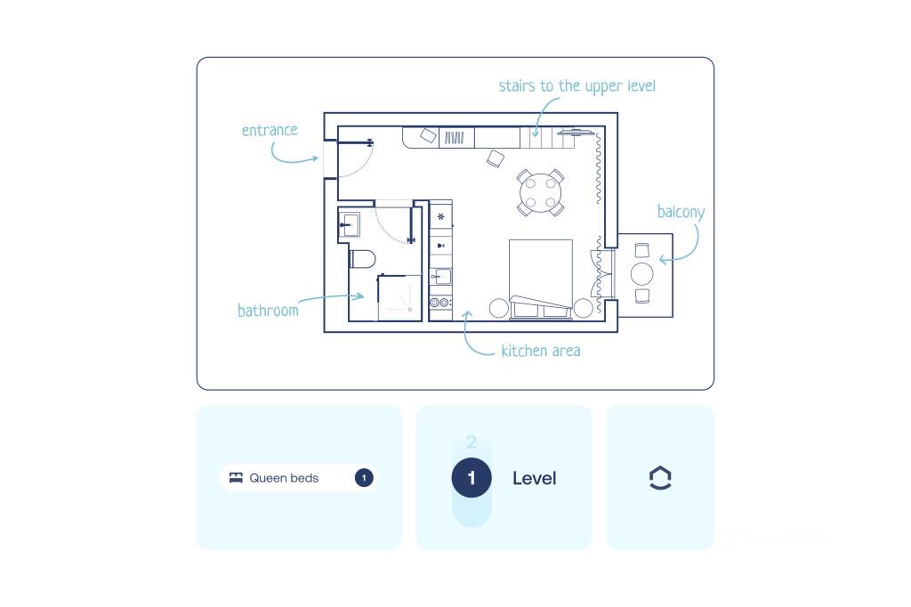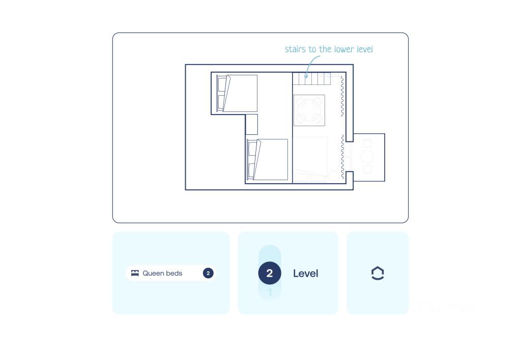 Vestavěné patro rozšiřuje obytný prostor a umožňuje maximální využití dispozice – ideální řešení i pro krátkodobé ubytování s vysokou obsazeností.
