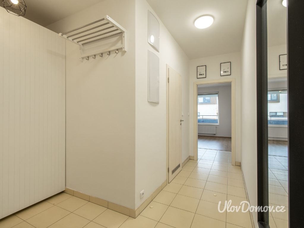 Nemovitost se prodává částečně zařízena - součástí prodeje je vestavěná lednička, myčka, pračka, sklokeramická deska, trouba, digestoř, šatní skříň, skříňka v koupelně, botník.