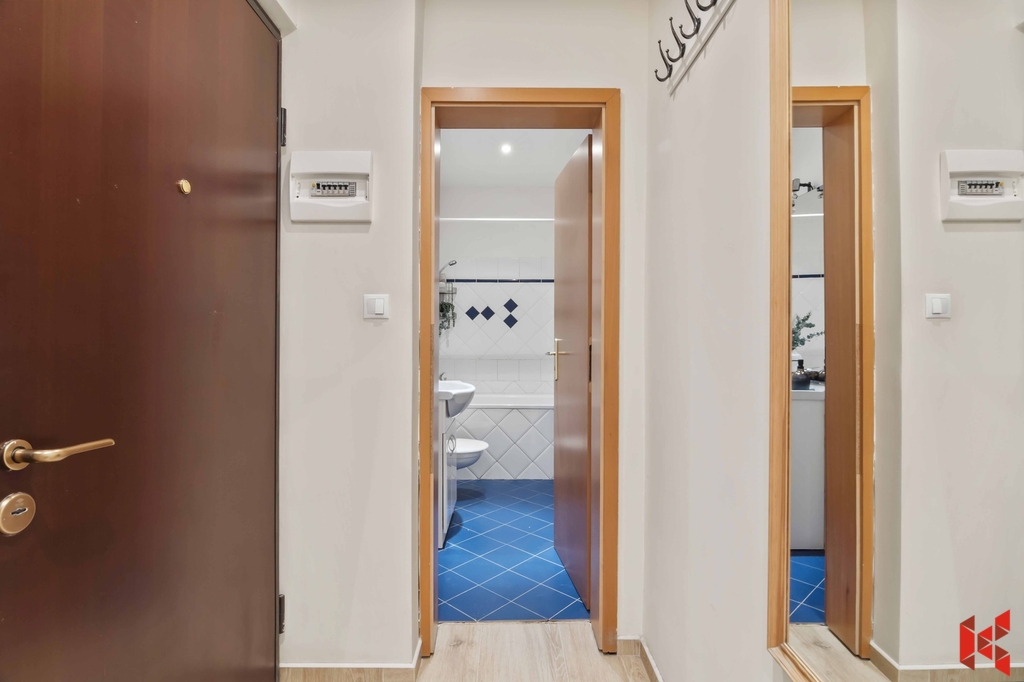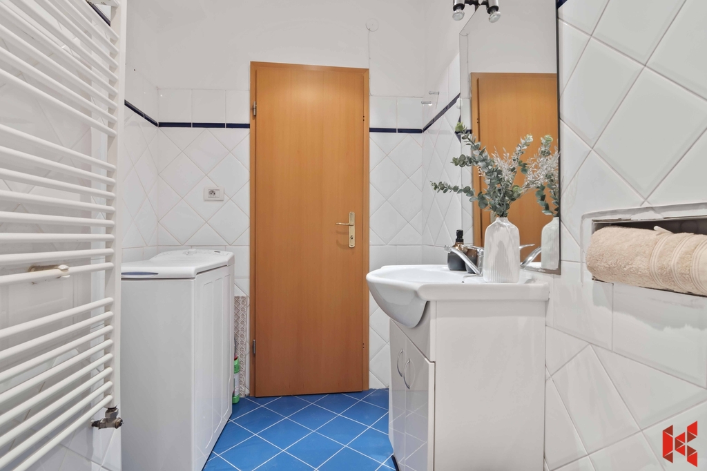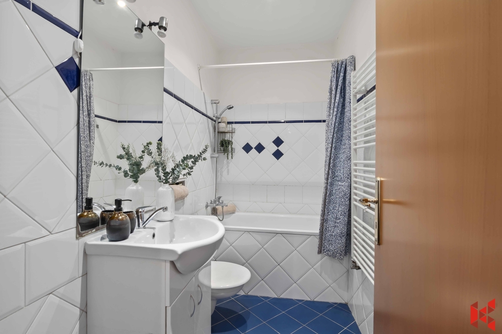✔ Prostornou koupelnu s vanou, toaletou i místem na pračku