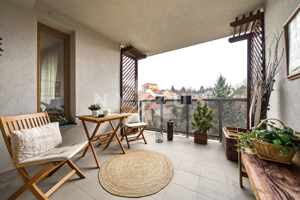 Výrazným benefitem jsou právě dvě venkovní lodžie, z nichž jedna větší je s výhledem do zeleně a přidává bytu další rozměr a příjemně rozšiřuje obytný prostor.