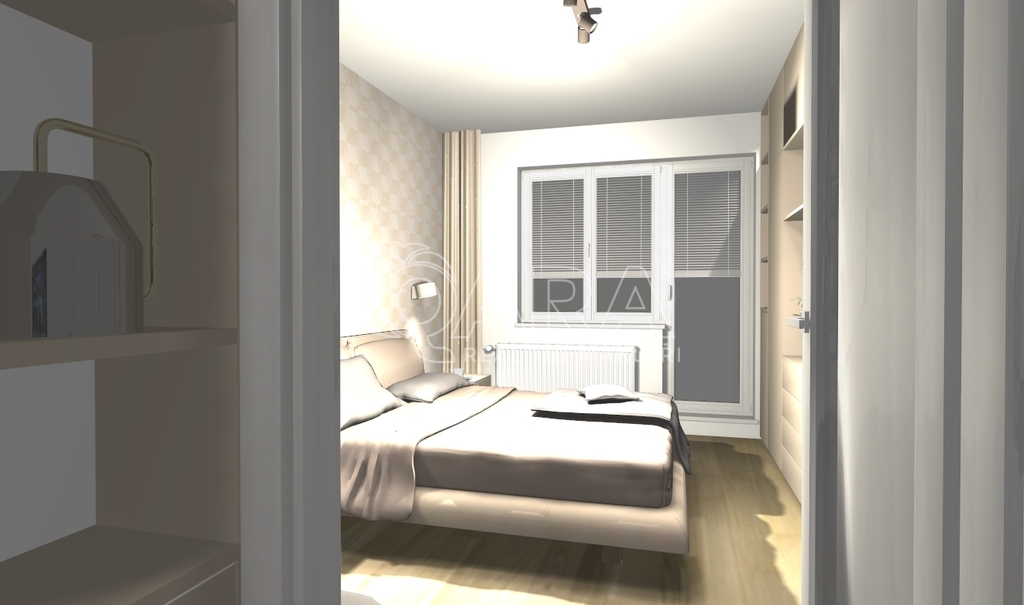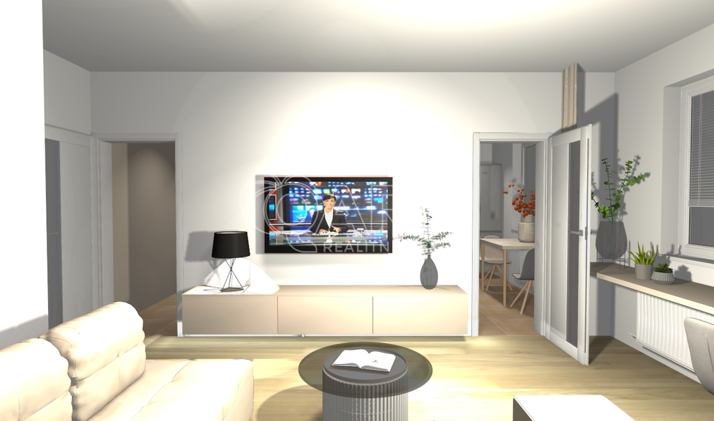 Původní dispozice bytu byla 2+1. Při rekonstrukci došlo k odstranění příčky mezi pokoji, díky čemuž je široká variabilita budoucího uspořádání. Nový majitel může zvolit některé z moderních řešení – například částečné rozdělení prostoru vestavěnou stěnou, případně variabilní členění pomocí posuvných panelů či skleněných stěn, které umožní flexibilně pracovat s prostorem podle aktuálních potřeb. Pokud byste však chtěli klasickou příčku a žádné další starosti a náklady, zajistíme pro vás její výstavbu bez dalších nákladů.