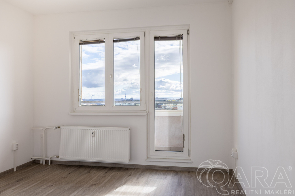 Byt je situován v posledním patře udržovaného panelového domu s výtahem, což zajišťuje dostatek světla, soukromí a ničím nerušený výhled. Ze zasklené lodžie se otevírá krásný pohled na Prahu včetně Pražského hradu, který dodává bydlení jedinečnou atmosféru.