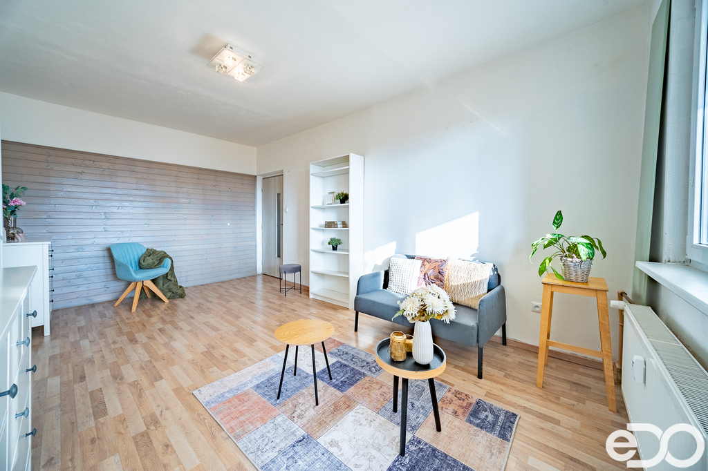 Dispozice bytu nabízí dva neprůchozí pokoje, samostatnou kuchyni - praktické uspořádání vhodné jak pro vlastní bydlení, tak pro investici. Velkým benefitem je prostorná zasklená lodžie s orientací na JZ o výměře cca 7 m², která poskytuje ideální místo pro relaxaci po celý rok. Byt prošel v roce 2013 modernizací (koupelna, WC, kuchyně, podlahové krytiny). Dům je po revitalizaci - zateplená fasáda, plastová okna.