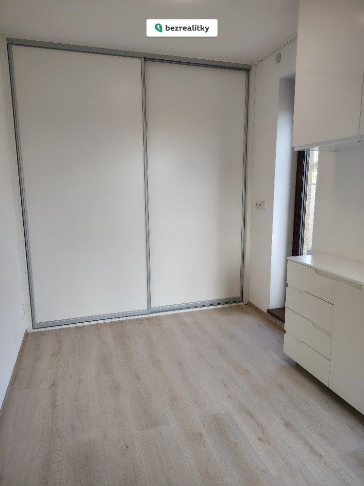 Z této místnosti vedou dveře do menší ložnice,kde je také vestavná skříň. V ložnici jsou dvoje uzamykatelné prosklené dveře, s venkovními roletami, které vedou na terasu 40 m2.