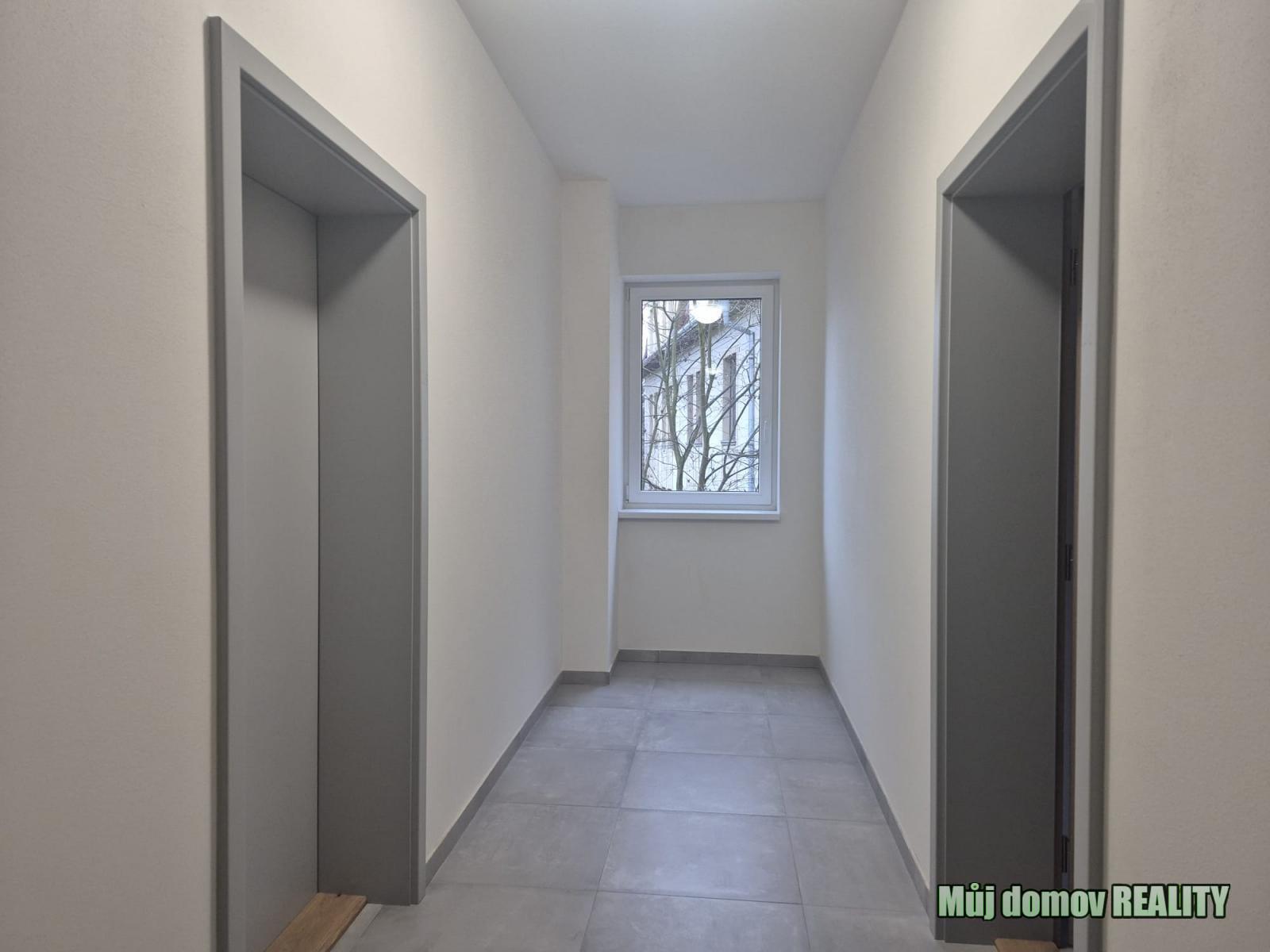 Byt nabízí praktickou dispozici: vstupní halu s kuchyňským koutem, obývací pokoj, samostatnou ložnici, koupelnu se sprchovým koutem a oddělené WC.