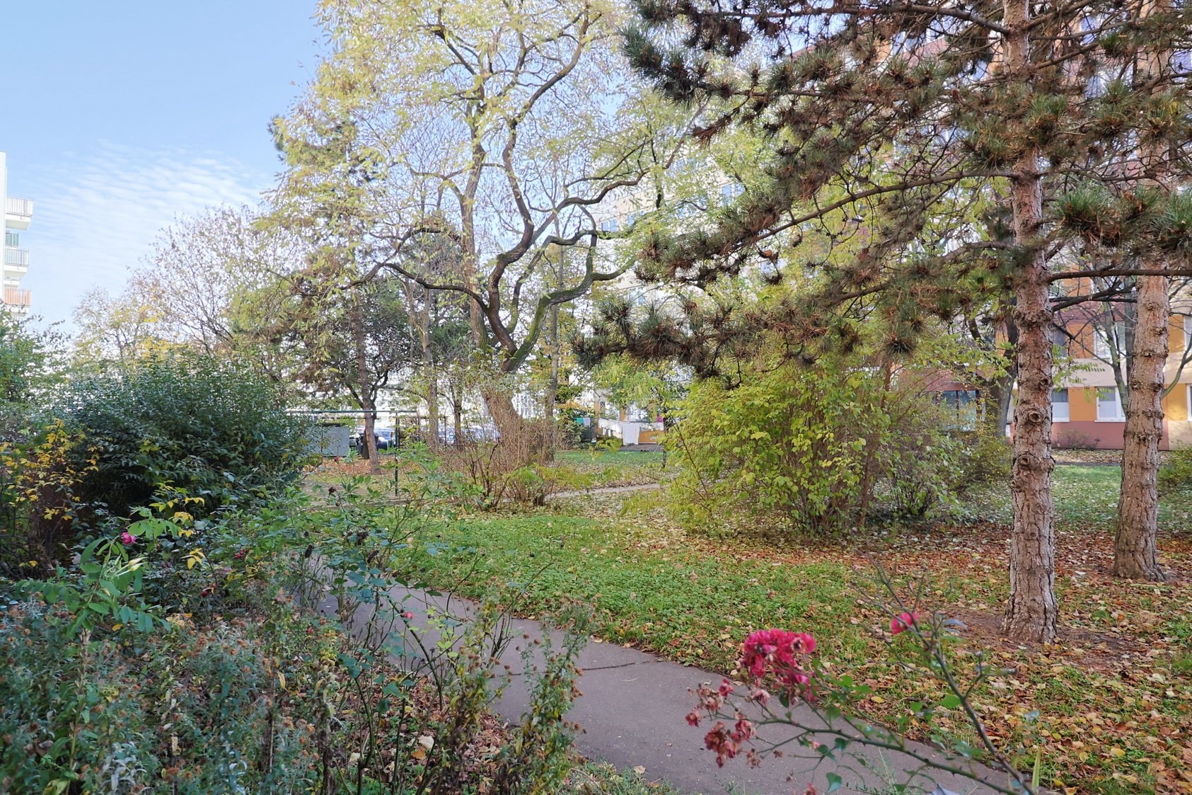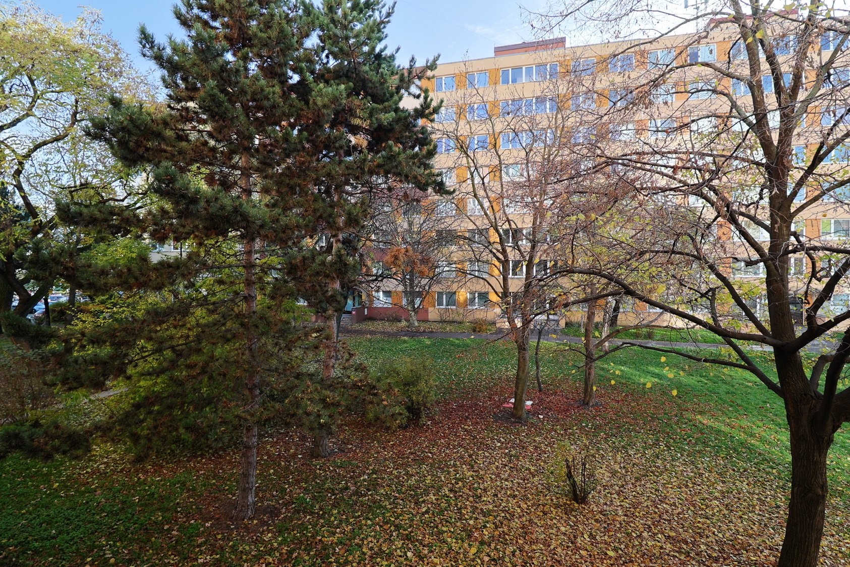 Bytový dům je v dobrém stavu – zateplení, plastová okna a novější výtah. Anuita je splacena, převod do osobního vlastnictví není aktuálně možný. Výhled z oken je na jihovýchod do příjemného parku se vzrostlými stromy. Parkování v přilehlých ulicích. Stanice metra je 5 minut chůzí od domu na obě strany (Budějovická – Pankrác).