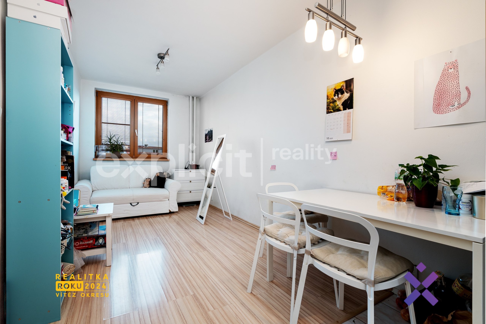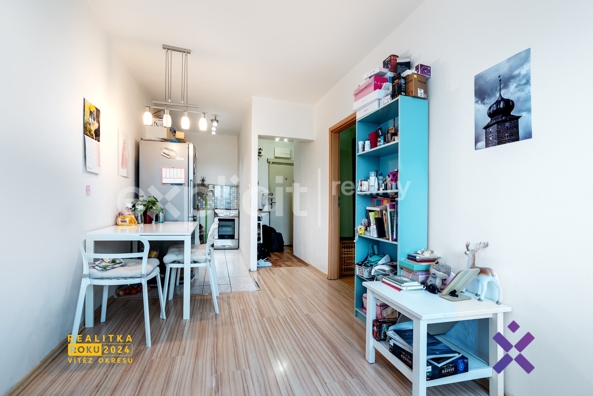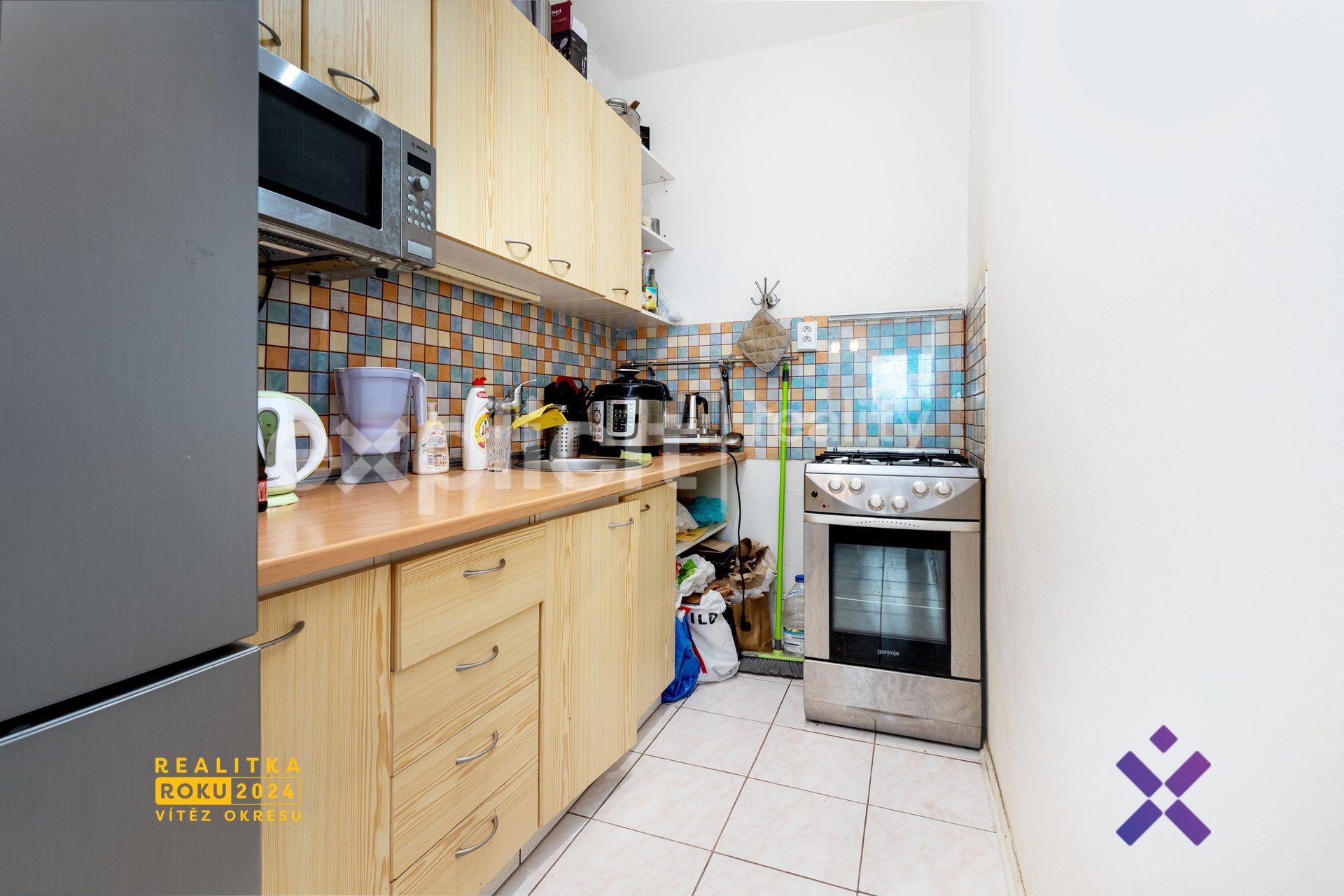Popis bytu: Byt s nádherným výhledem do vnitrobloku a dispozicí 2+kk je situován v 4. podlaží rezidenčního cihlového domu. Obývací pokoj s kuchyňským koutem o velikosti 17 m2 a prostorná ložnice o velikosti 17,50 m2. V bytě se dále nachází koupelna se sprchovým koutem a toaletou. V obývacím pokoji, chodbě a ložnici je plovoucí laminátová podlaha v dekoru dřeva. V ostatních místnostech je dlažba. Výhled do vnitrobloku vám zajistí velkorysá plastová okna v dekoru dřeva. K bytu náleží i sklepní kóje. V domě jsou instalovány nové vchodové dveře s kamerovým systémem a v roce 2025 proběhla výměna stoupaček.