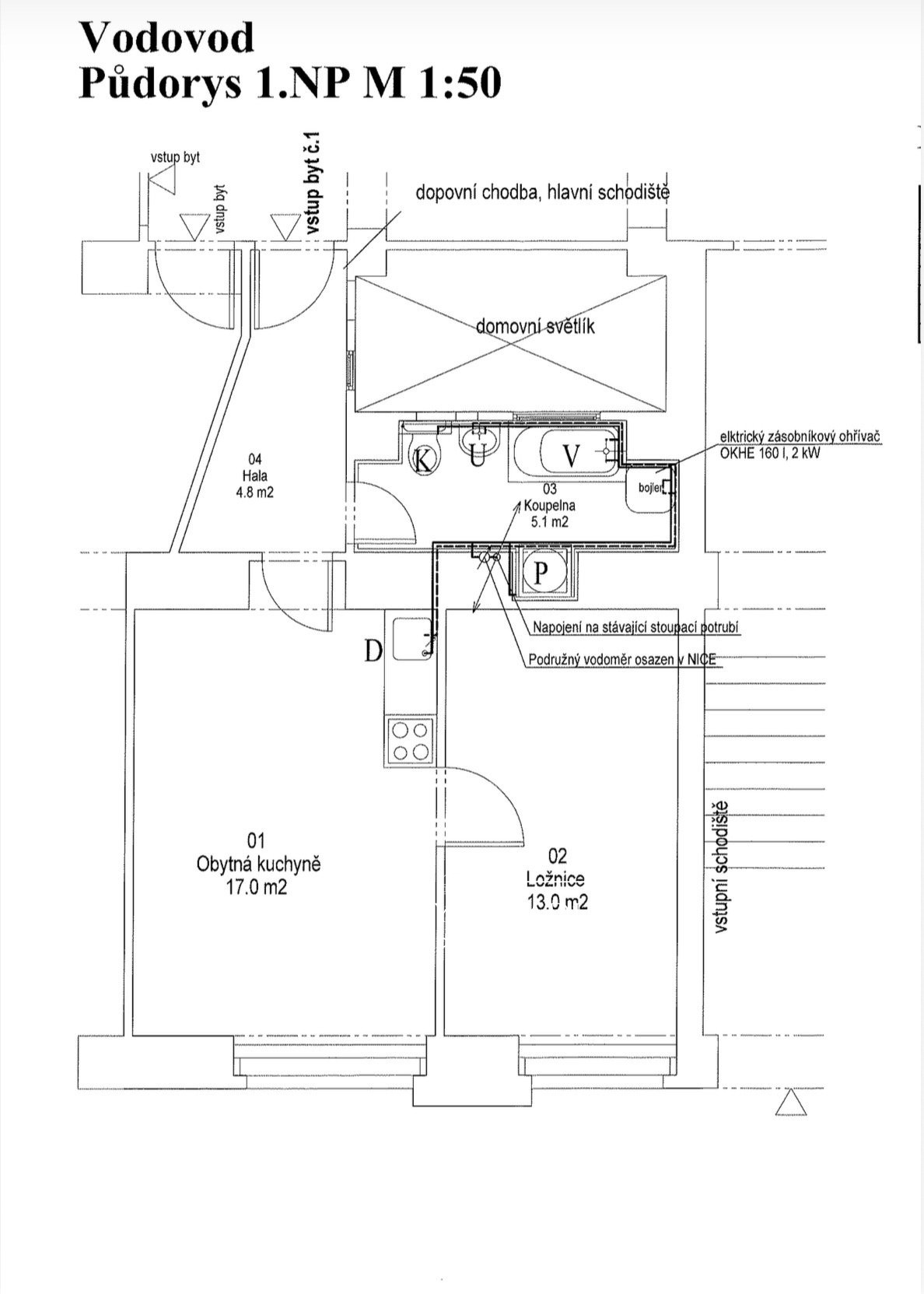 Byt tvoří vstupní chodba, ze které je přístup do koupelny s vanou se sprchovací zástěnou, toaletou, umyvadlem a téměř novou pračkou Whirpool.