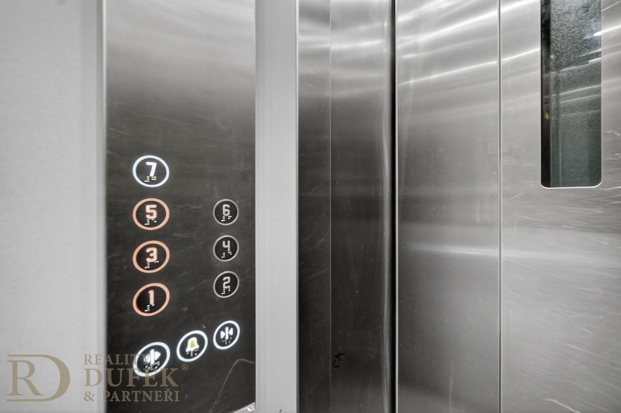 Byt se nachází v 7. nadzemním podlaží, tedy v posledním patře domu s výtahem, což přináší větší klid, soukromí a příjemnou atmosféru podkrovního bydlení. Nemovitost prošla v roce 2018 kompletní rekonstrukcí a je ve velmi dobrém technickém stavu. Dispozice nabízí obývací pokoj s kuchyňským koutem, samostatnou ložnici, koupelnu a vstupní chodbu. Komfort v letních měsících zajišťuje klimatizace.