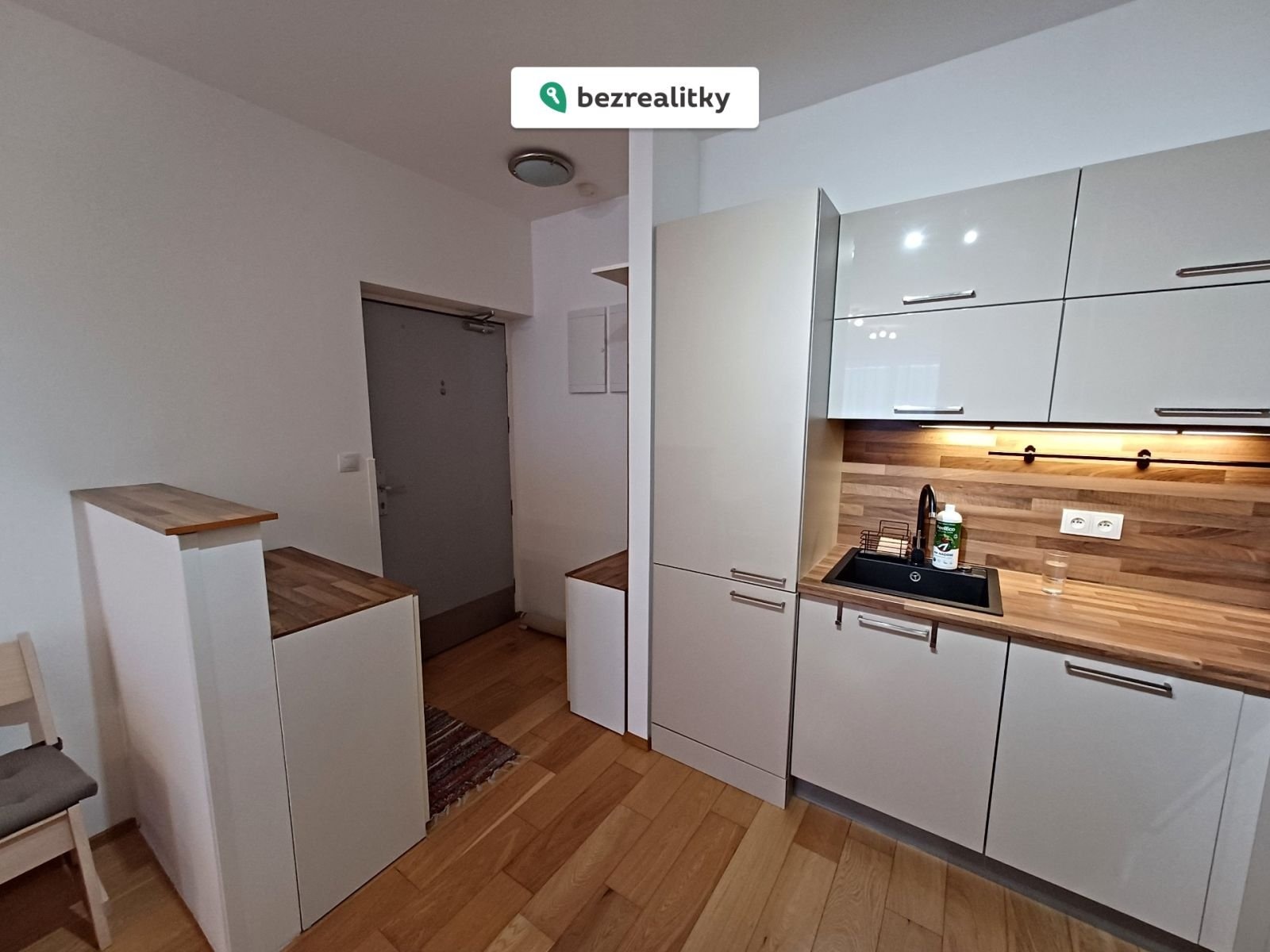 - plně vybavená kuchyňská linka s vestavěnými spotřebiči (myčka, pračka, lednice s mrazákem),