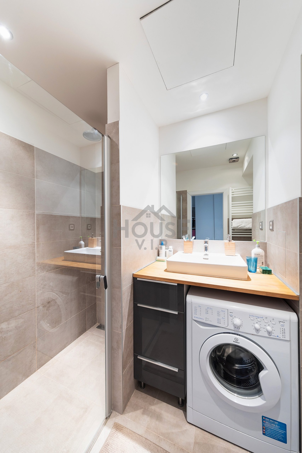 • Koupelna se sprchovým koutem walk-in (bez vaničky), s žebříkovým topením;