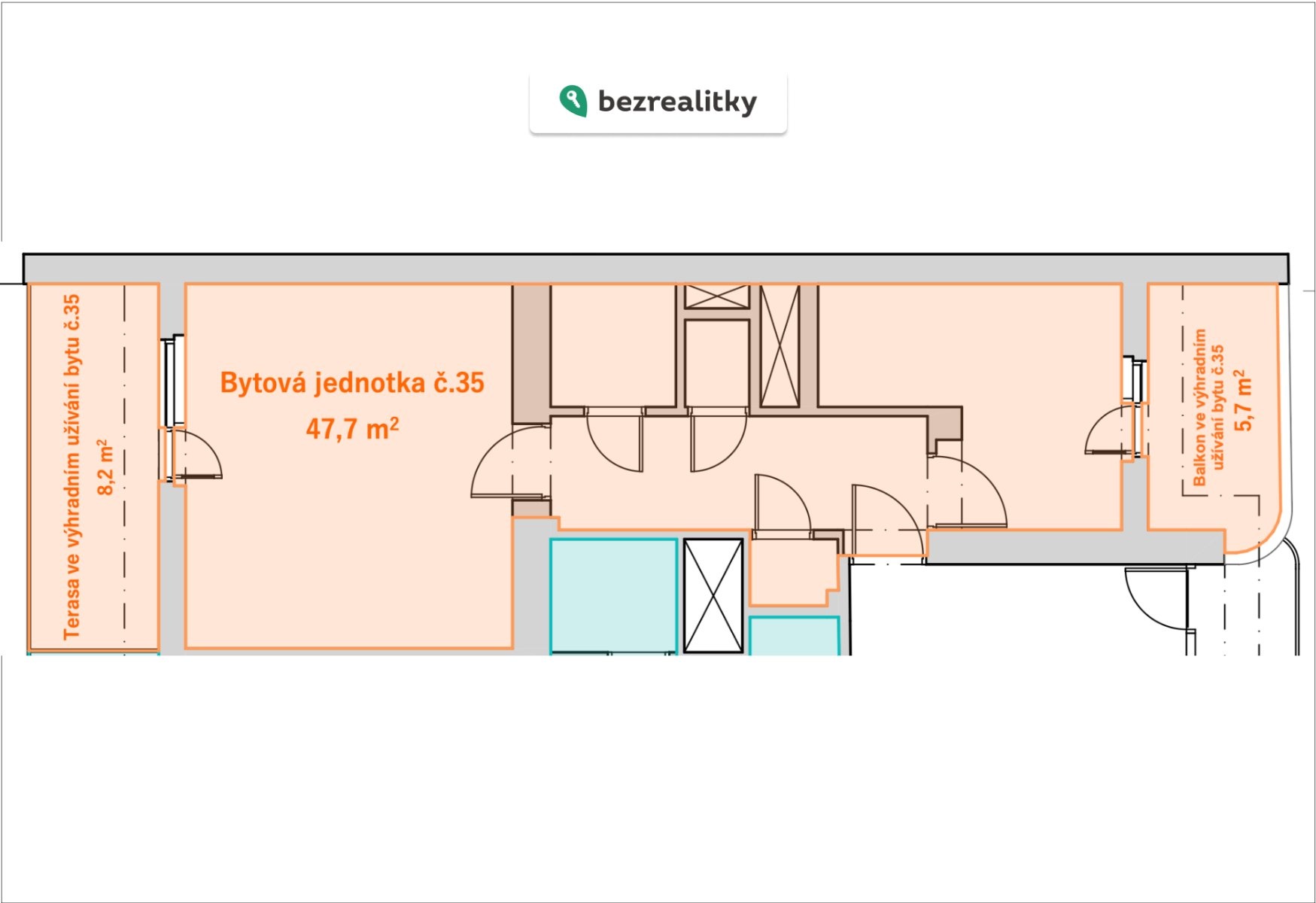 • druhá terasa do klidného vnitrobloku o velikosti 5,7 m²