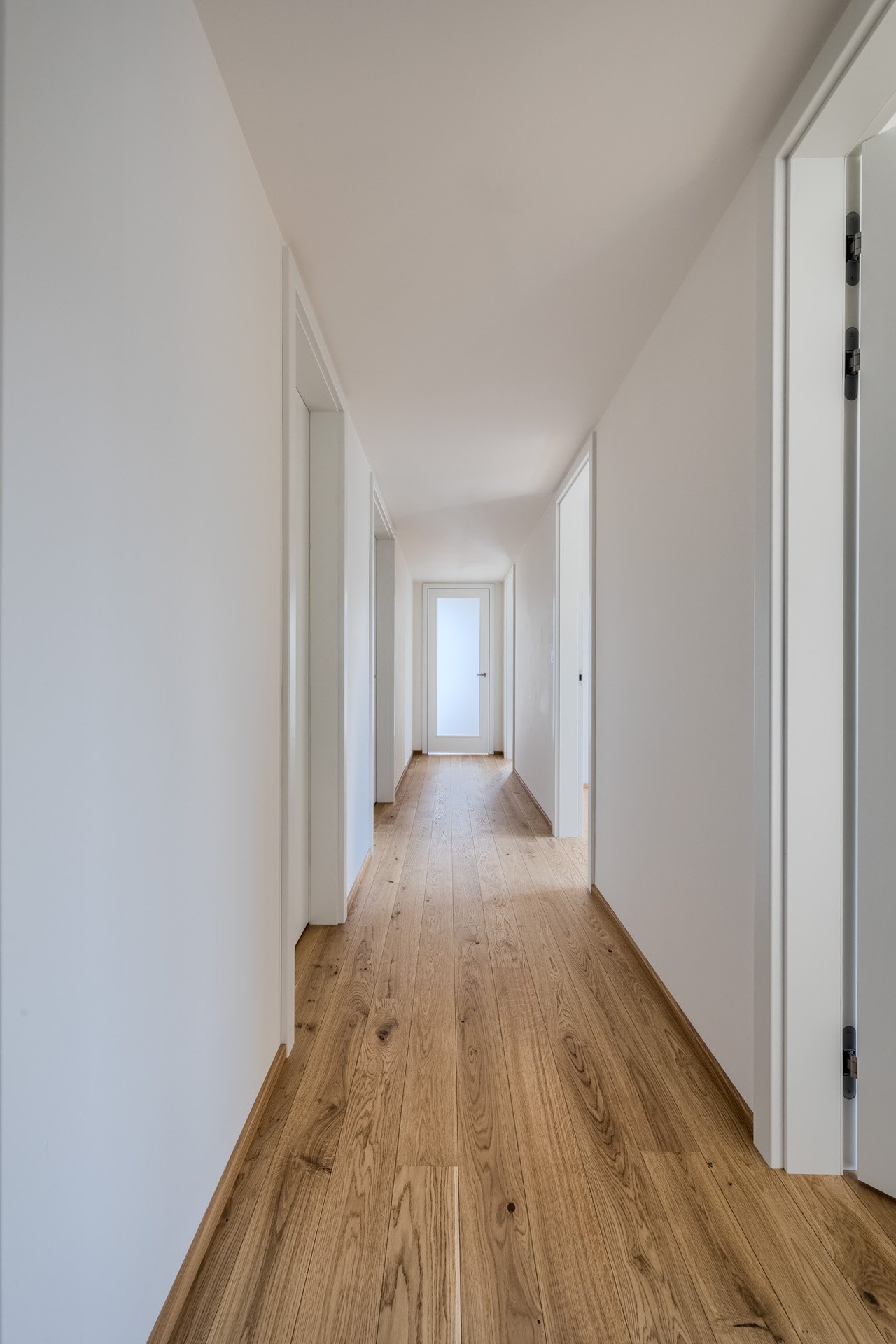 O pohodlí se starají moderní technologie – rekuperace, stropní chlazení, exteriérové žaluzie či izolační trojskla. Vše je řízeno chytrým systémem Loxone, který zajišťuje příjemné a úsporné bydlení v každém ročním období.
