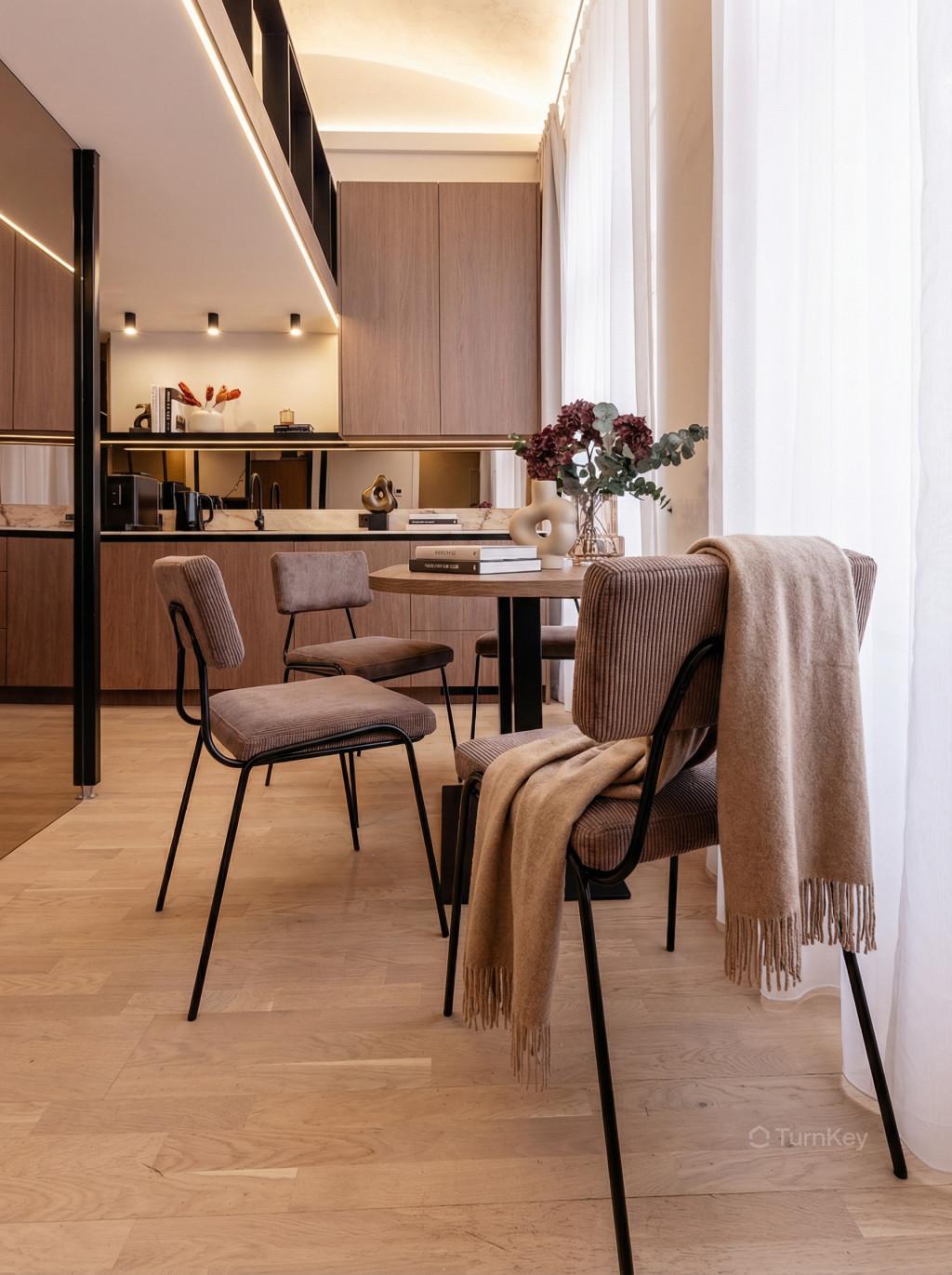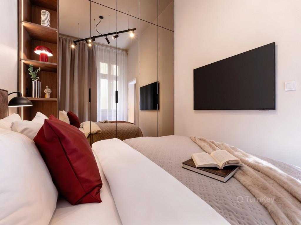 Byt je kompletně zařízen nábytkem na míru a moderními spotřebiči. Nemovitost je připravena k okamžitému bydlení nebo pronájmu bez dalších investic.