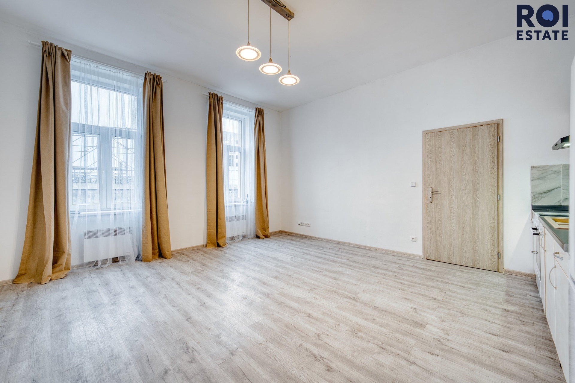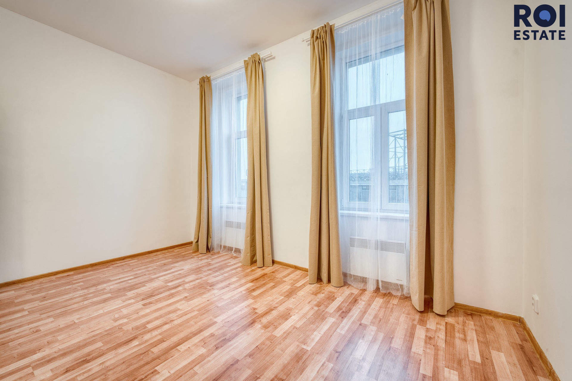 Díky velkým oknům působí byt vzdušně a světlým dojmem. V obytných místnostech jsou plovoucí podlahy, koupelna a toaleta jsou obloženy keramickou dlažbou.