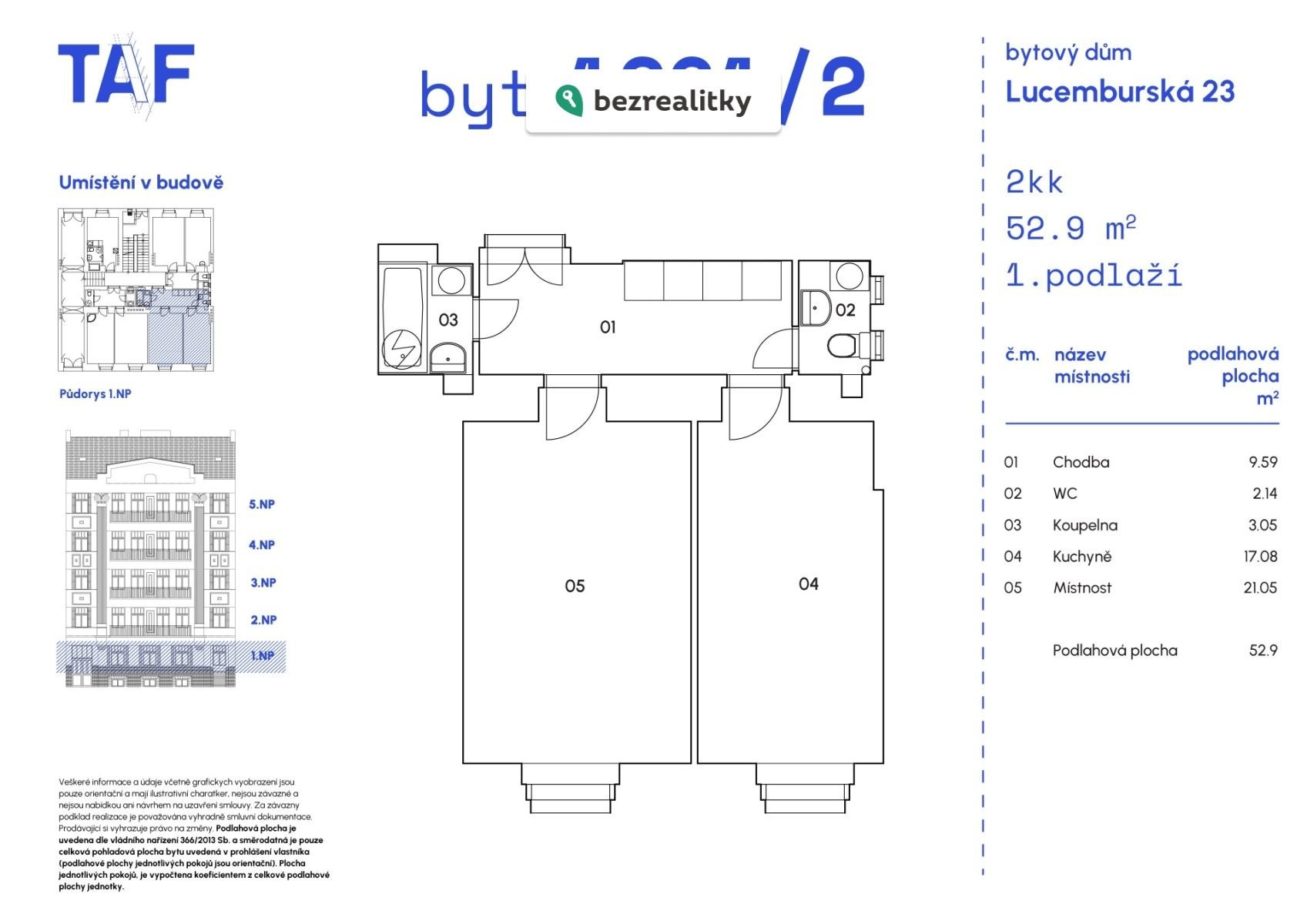 | Dispozice/podlahová plocha: | 2+kk/53 m² |