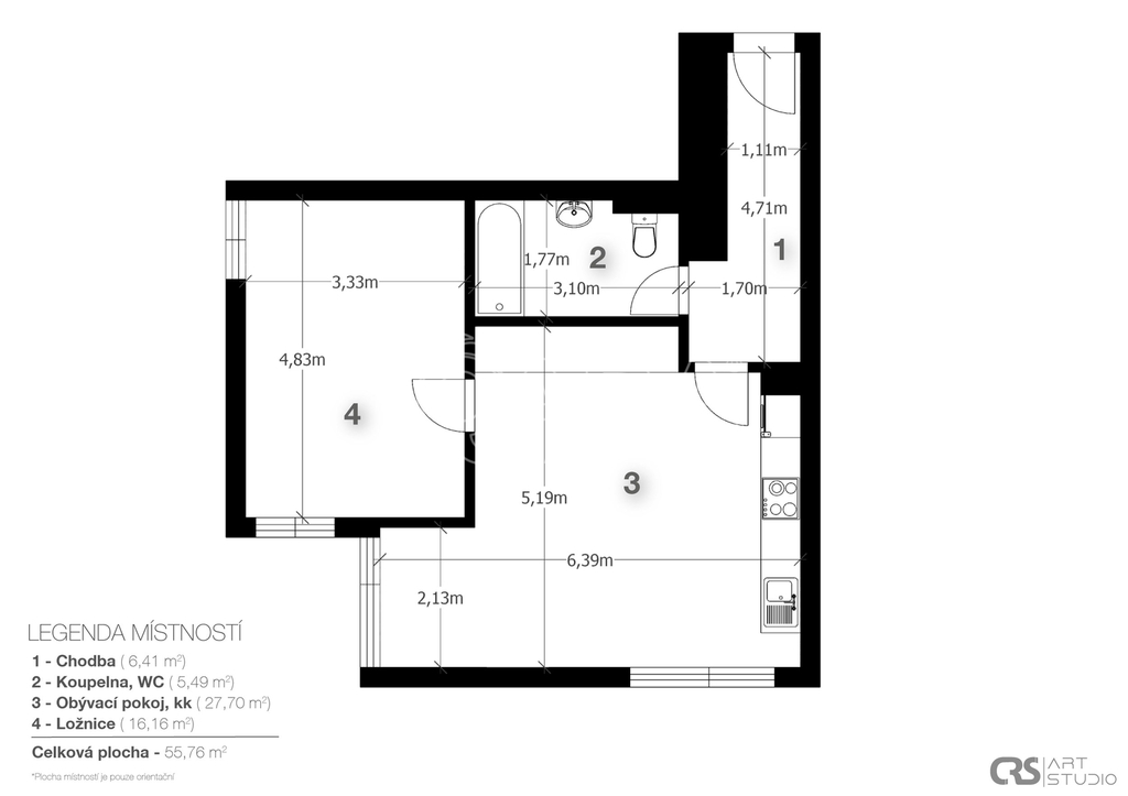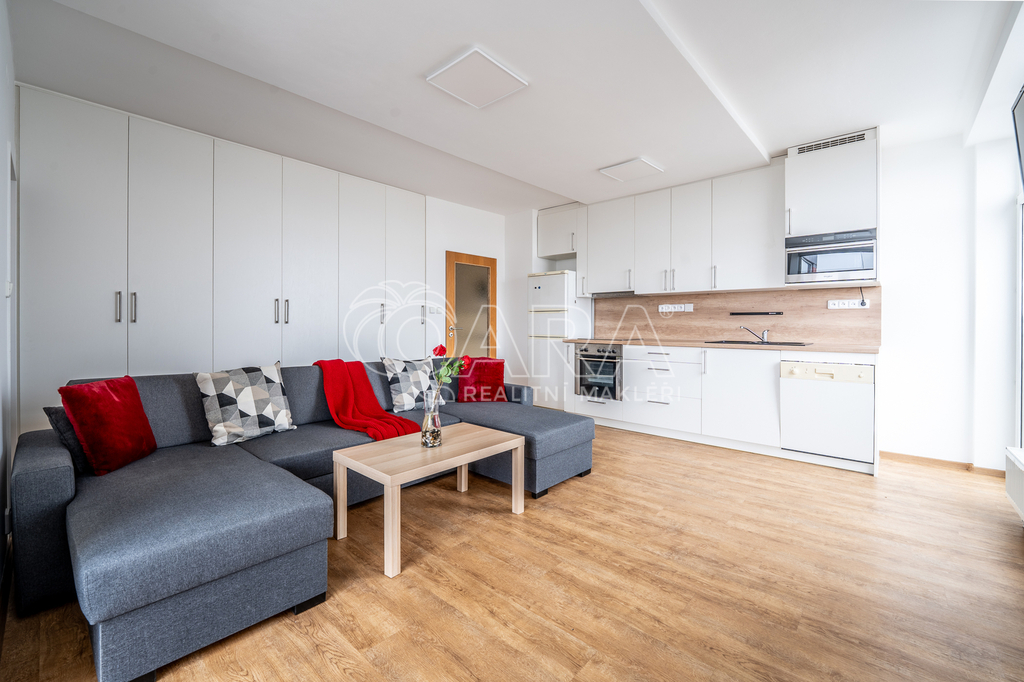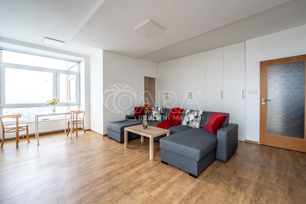 Byt disponuje celkovou podlahovou plochou 55,76 m² a jeho dispozice je řešena velmi prakticky. Tvoří jej obývací pokoj s kuchyňským koutem, prostorná ložnice, chodba a koupelna s WC. Díky vyššímu patru je byt příjemně světlý, nabízí otevřené výhledy do okolí a zároveň klid i dostatek soukromí. Nemovitost je ve velmi dobrém technickém stavu a připravena k okamžitému užívání. Přestože byt nedisponuje balkonem ani sklepem, nabízí dostatek úložných prostor přímo v interiéru, což zajišťuje pohodlné každodenní fungování. Byt se nachází v rezidenčním domě z roku 1999, jehož součástí je vrátnice s nepřetržitým provozem 24/7, což výrazně zvyšuje komfort i pocit bezpečí rezidentů.