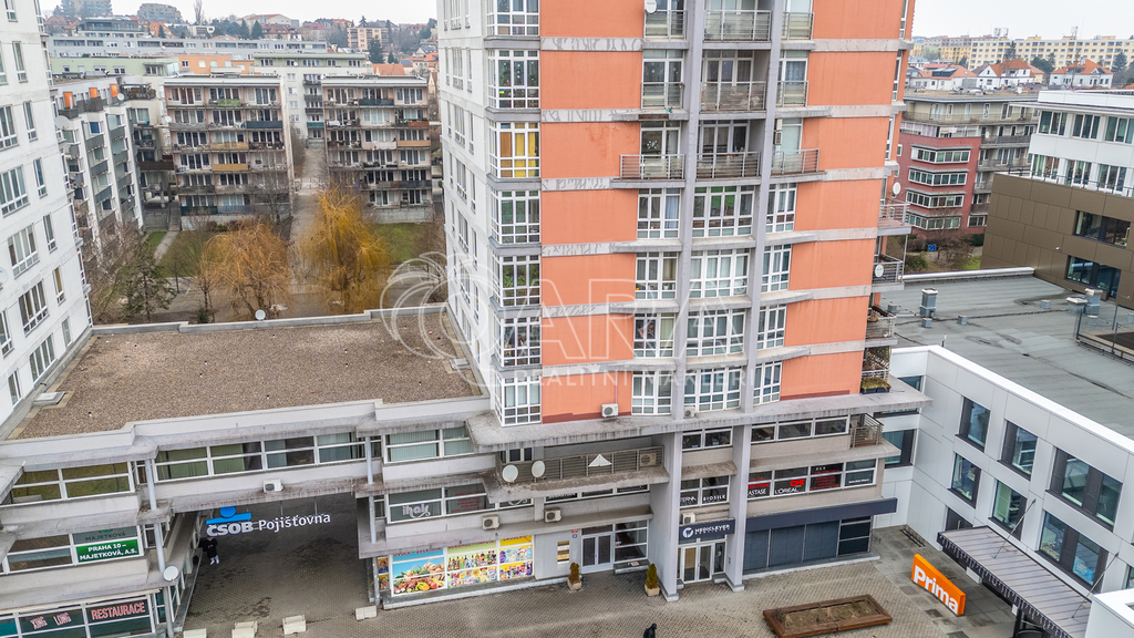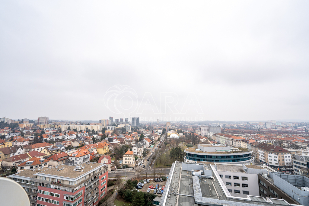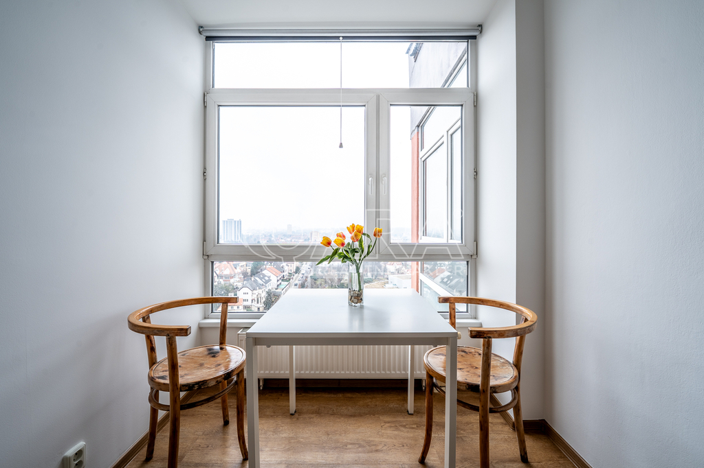 Nabízíme k exkluzivnímu prodeji světlý byt o dispozici 2+kk, umístěný v 17. nadzemním podlaží rezidenčního domu na Vinohradské ulici v Praze 10, jen pár kroků od stanice metra Strašnická.