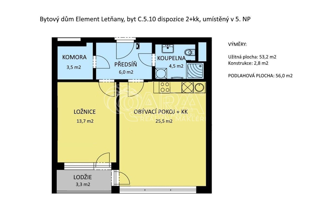 Pak je pro Vás ideální možností koupě bytu 2+kk o podlahové ploše 56 m2, ke kterému navíc přísluší více než třímetrová lodžie.