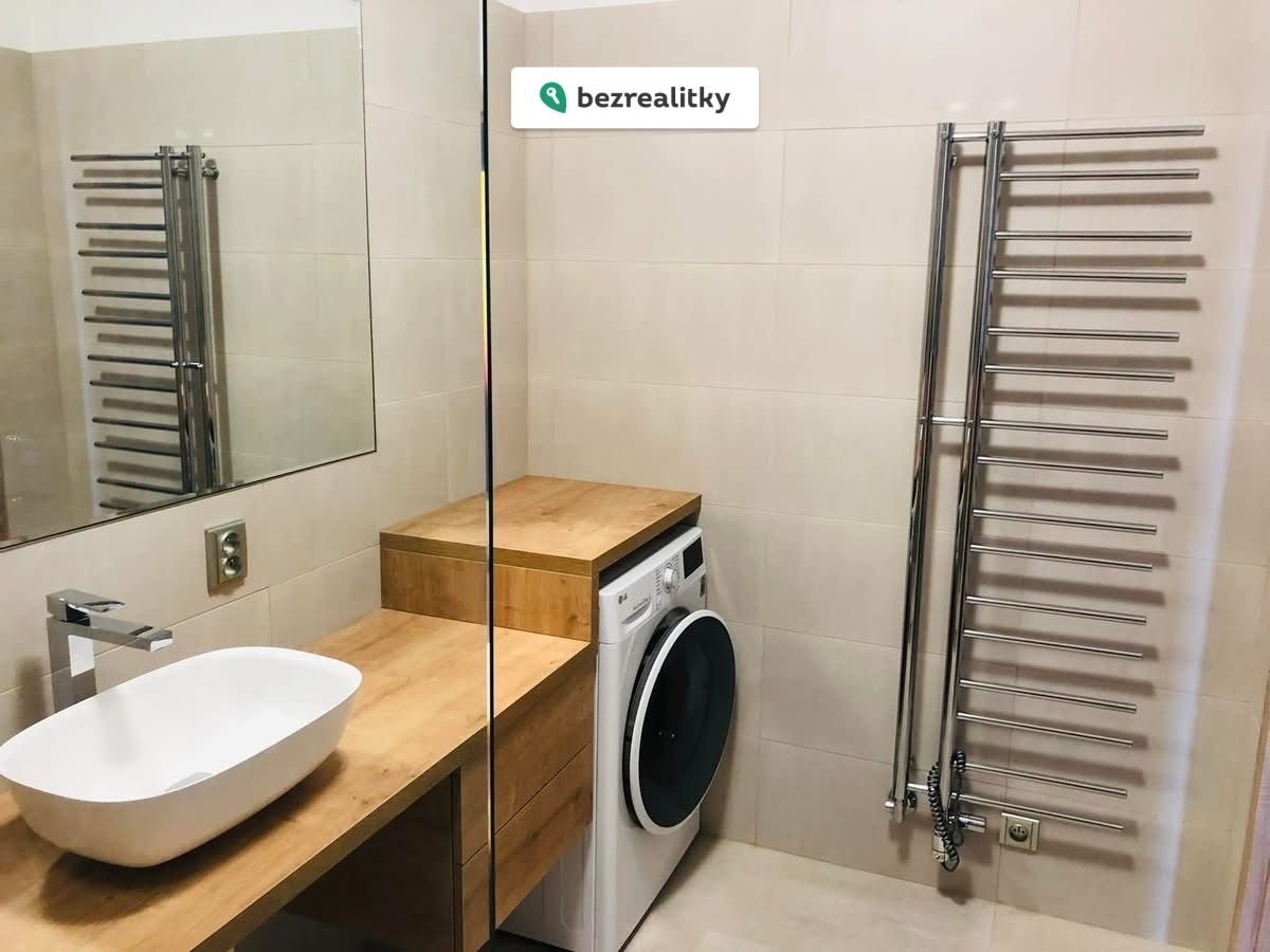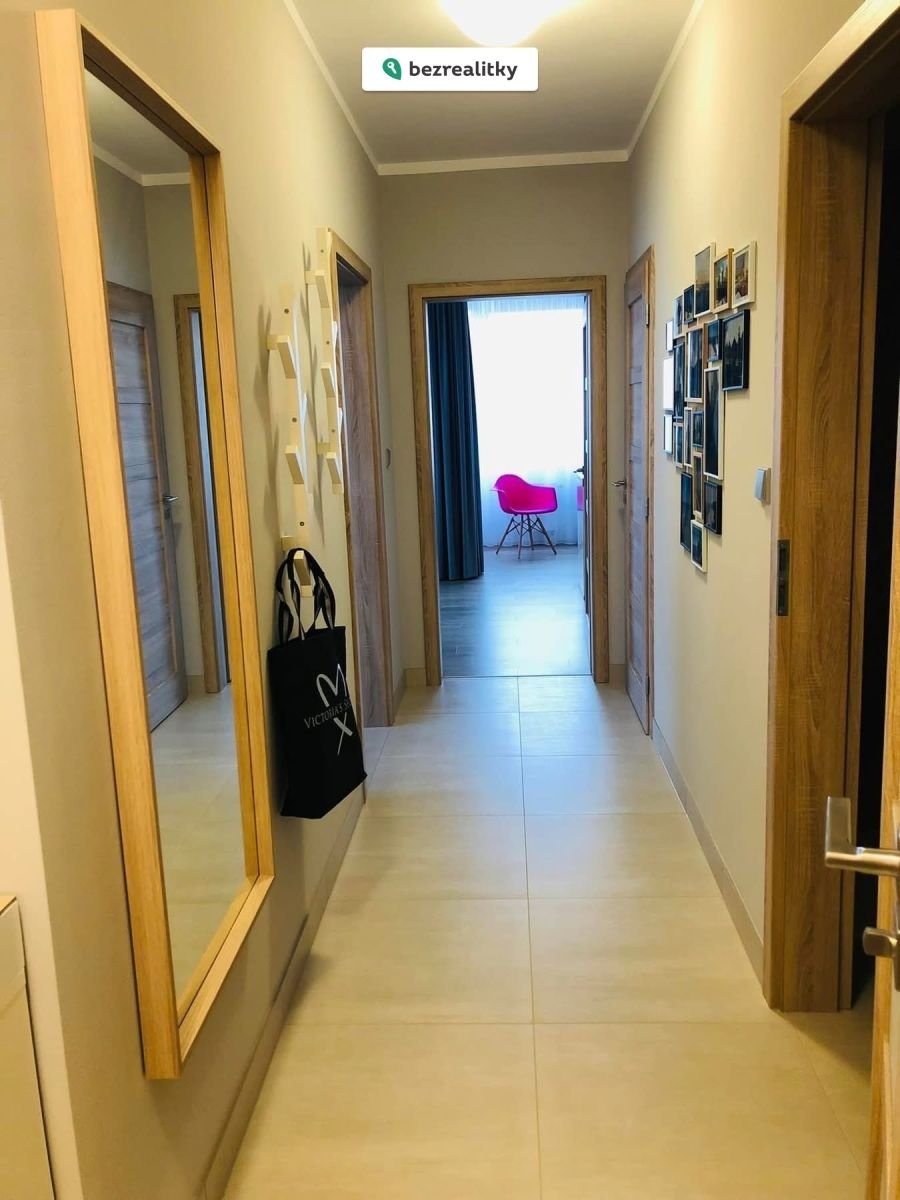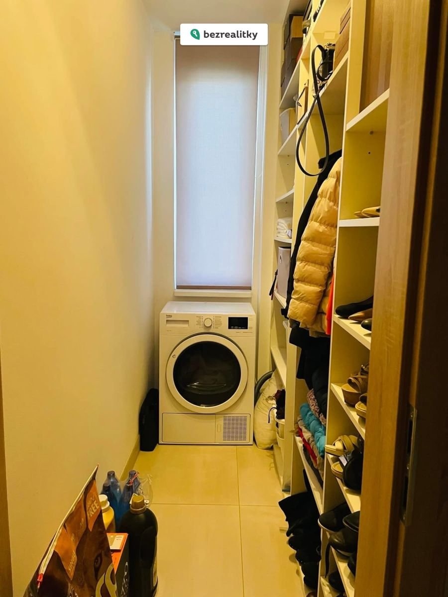 Dispozice a vybavení: kuchyňský kout plně vybavený - trouba, mikrovlnná trouba, digestoř, myčka, varná deska a lednice. Ložnice s velkou vestavěnou skříní s množstvím úložných prostor. Samostatná šatna s vestavěným policovým systémem. Koupelna se prostorným sprchovým koutem, samostatné WC, v koupelně je také na míru uzpůsobený nábytek pro umístění pračky.