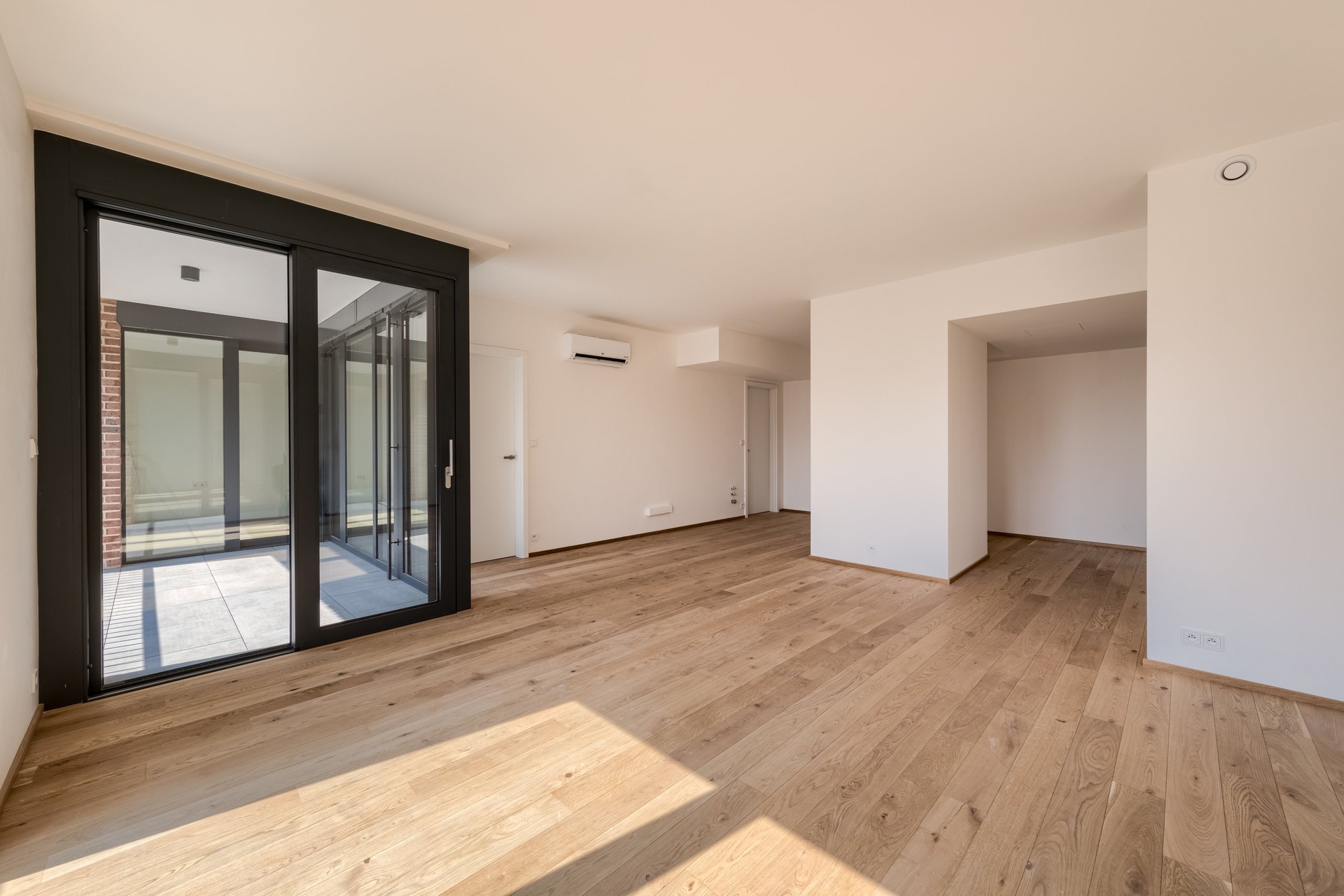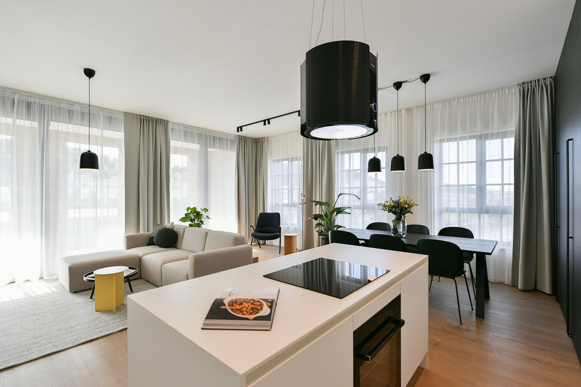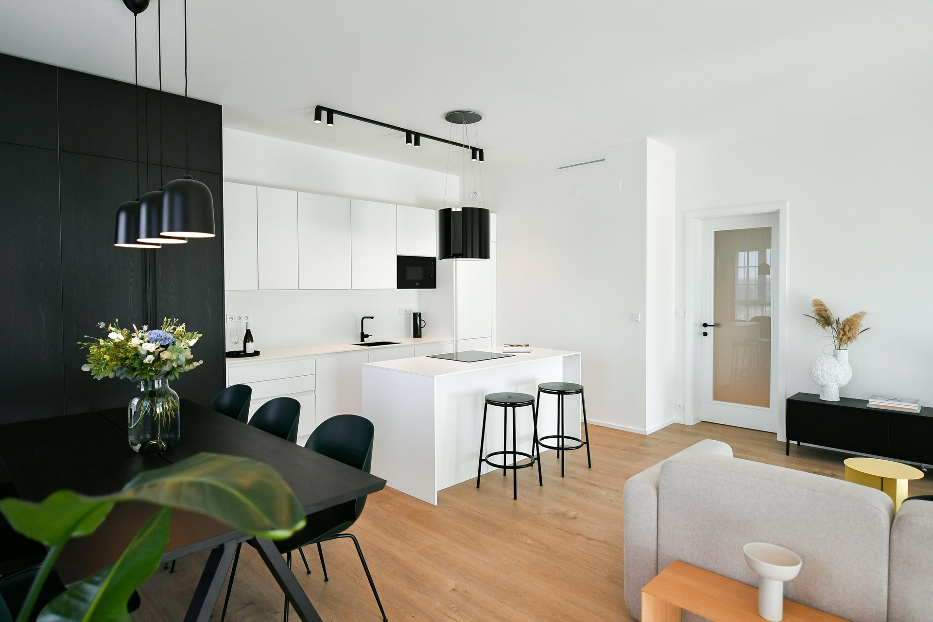 O pohodlí se starají moderní technologie – rekuperace, stropní chlazení, exteriérové žaluzie či izolační trojskla. Vše je řízeno chytrým systémem Loxone, který zajišťuje příjemné a úsporné bydlení v každém ročním období.