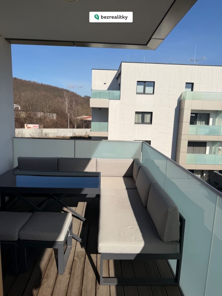 Z obývací části je vstup na prostorný balkon s dřevěnou podlahou, který nabízí příjemné místo pro ranní kávu, večerní odpočinek i posezení s přáteli. Díky své velikosti je plnohodnotným rozšířením obytného prostoru.