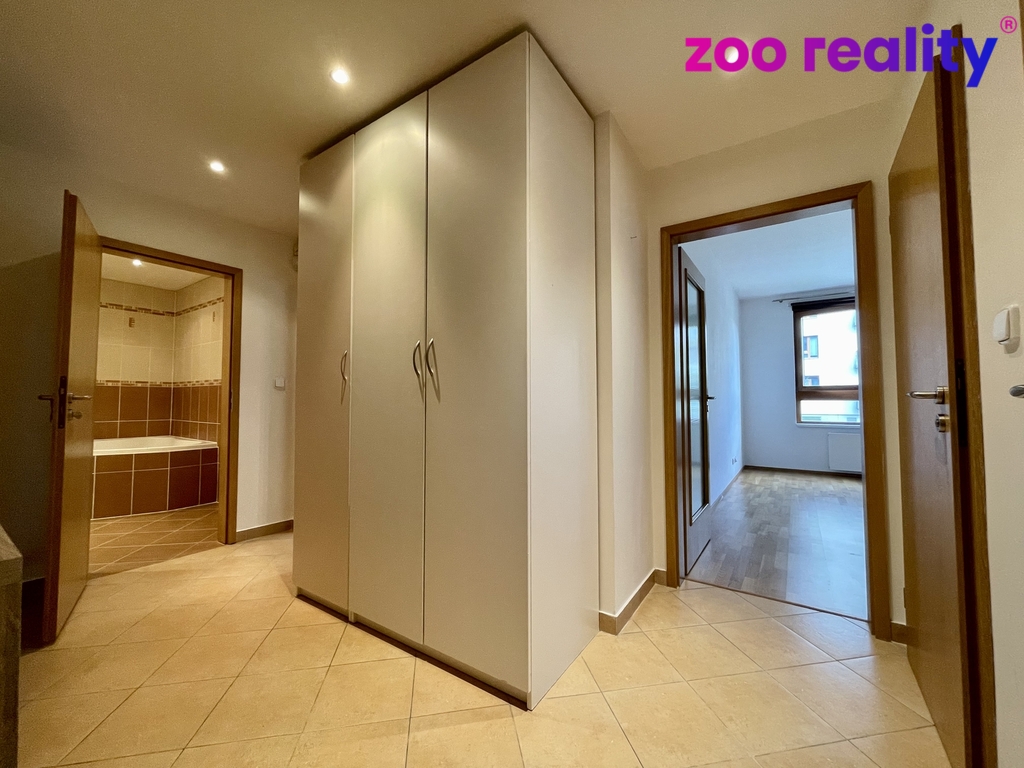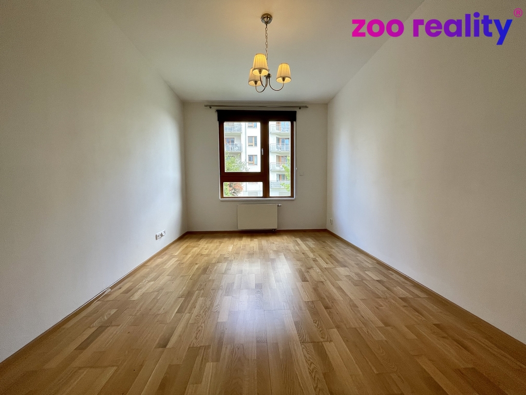 Dispozice bytu se skládá z prostorného obývacího pokoje s kuchyňským koutem (25,8m2), jehož prosklené francouzské dveře vedou na terasu a do vlastní zahrady o rozloze 56 m², což poskytuje skvělé možnosti pro relaxaci a odpočinek v soukromí. Dále byt zahrnuje ložnici (14,4m2), koupelnu s pračkou a samostatné WC. Nechybí zde ani úložný prostor v podobě komory, což je praktickým řešením pro uskladnění potřebných věcí. Bytový dům má moderní výtah.
