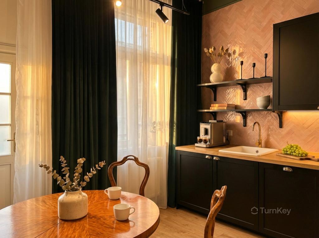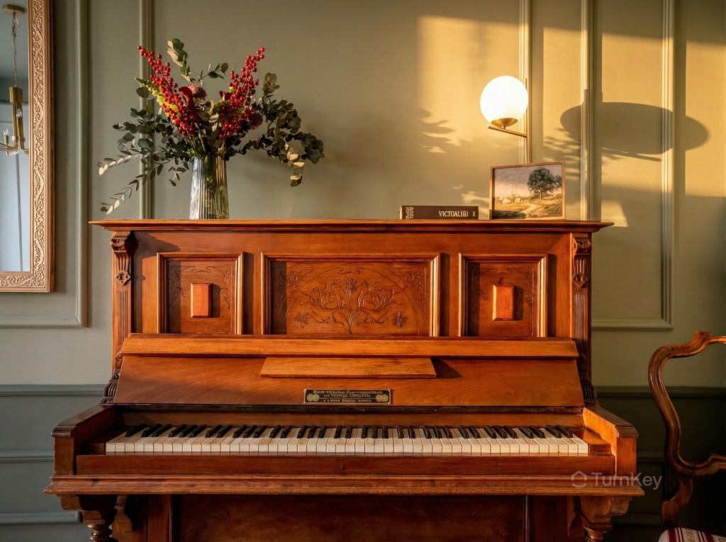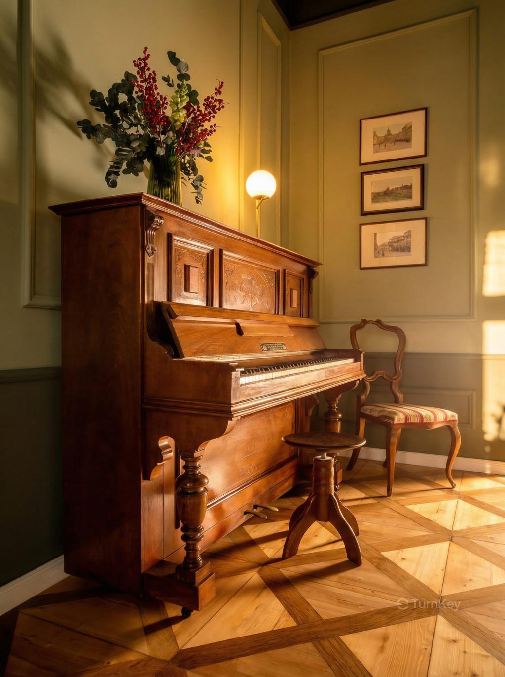 Interiér prošel kompletní rekonstrukcí s důrazem na zachování původních prvků, jako jsou například stylové dřevěné podlahy, které evokují dobu, kdy zde skladatel žil a tvořil.