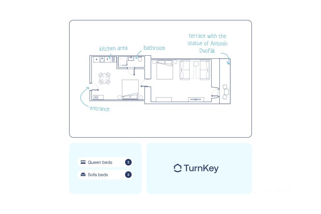 Byt má mimořádnou historickou hodnotu – po téměř 30 let v něm žil a tvořil světoznámý skladatel Antonín Dvořák, až do své smrti v roce 1904. Jedná se o jedinou jednotku v domě s balkonem orientovaným do ulice Žitná, kde je umístěna originální bronzová busta Antonína Dvořáka.