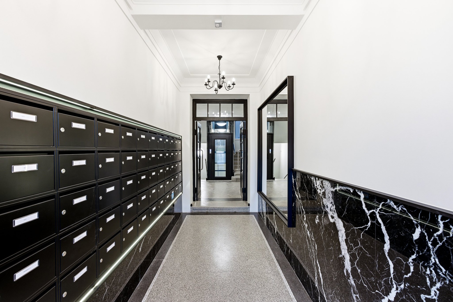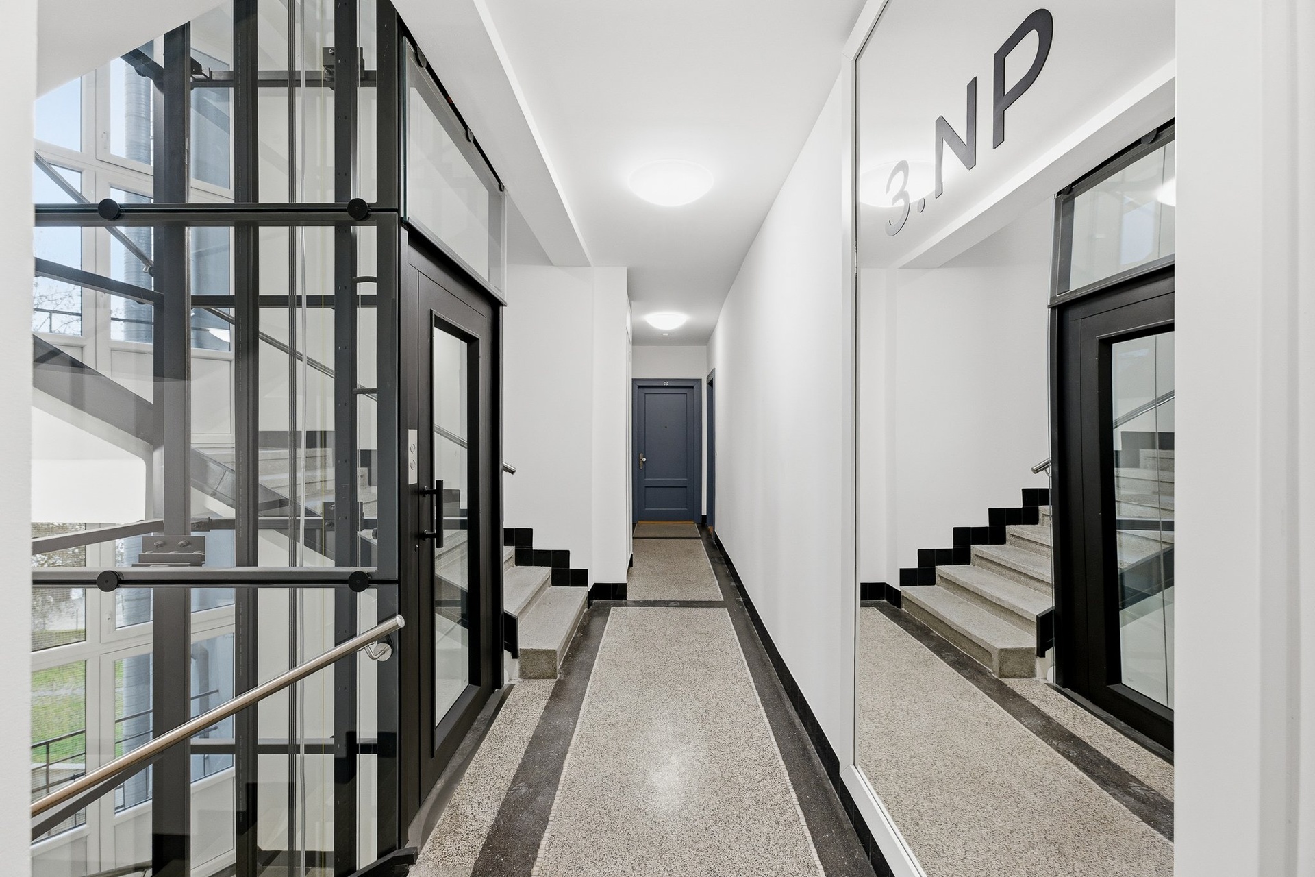 Půdorys jednotky v 7. podlaží zahrnuje prostorný obývací pokoj s přípravou na kuchyňský kout, ložnici, koupelnu se sprchovým koutem a toaletu a chodbu s dostatkem místa na vestavěné skříně. K jednotce náleží také dvě sklepní kóje o celkové výměře 3,4 m². Jednotka je ve stavu před rekonstrukcí, což vám dává možnost vytvořit si interiér přesně podle vlastních představ. Při vstupu do domu vás přivítají luxusně zrekonstruované společné prostory s mramorovými obklady, designovým osvětlením z broušeného skla a novým proskleným výtahem. Součástí domu je také upravený vnitroblok s lavičkami a vyvýšenými záhony – ideální místo pro odpočinek nebo grilování s přáteli.