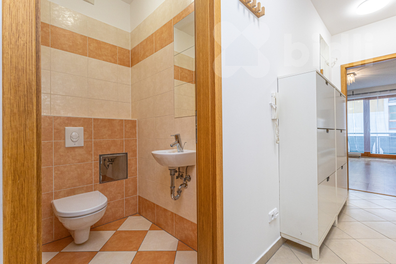 Interiér působí vzdušným a promyšleným dojmem. Každý den zde zpříjemňuje nadstandard v podobě dvou samostatných toalet, praktický detail, který ocení nejen pár, ale i návštěvy. Obytný prostor přirozeně navazuje na balkon (7,2 m2) orientovaný do klidného prostředí, ideální pro ranní kávu, večerní sklenku vína nebo chvíle relaxu po práci.