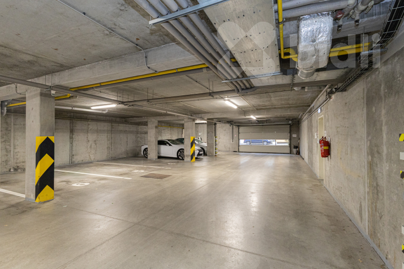 Součástí jednotky jsou šatna, garážové stání a sklepní kóje (2,5 m2), díky nimž odpadá řešení parkování i ukládání sezónních věcí. Samotný dům zkolaudovaný v roce 2007 působí uklidňujícím a upraveným dojmem, stejně jako celé okolí. Dalším nadstandartním prvkem výbavy jsou předokenní kastlíky na rolety elektricky ovládané a rozvody na elektronický zabezpečovací systém.